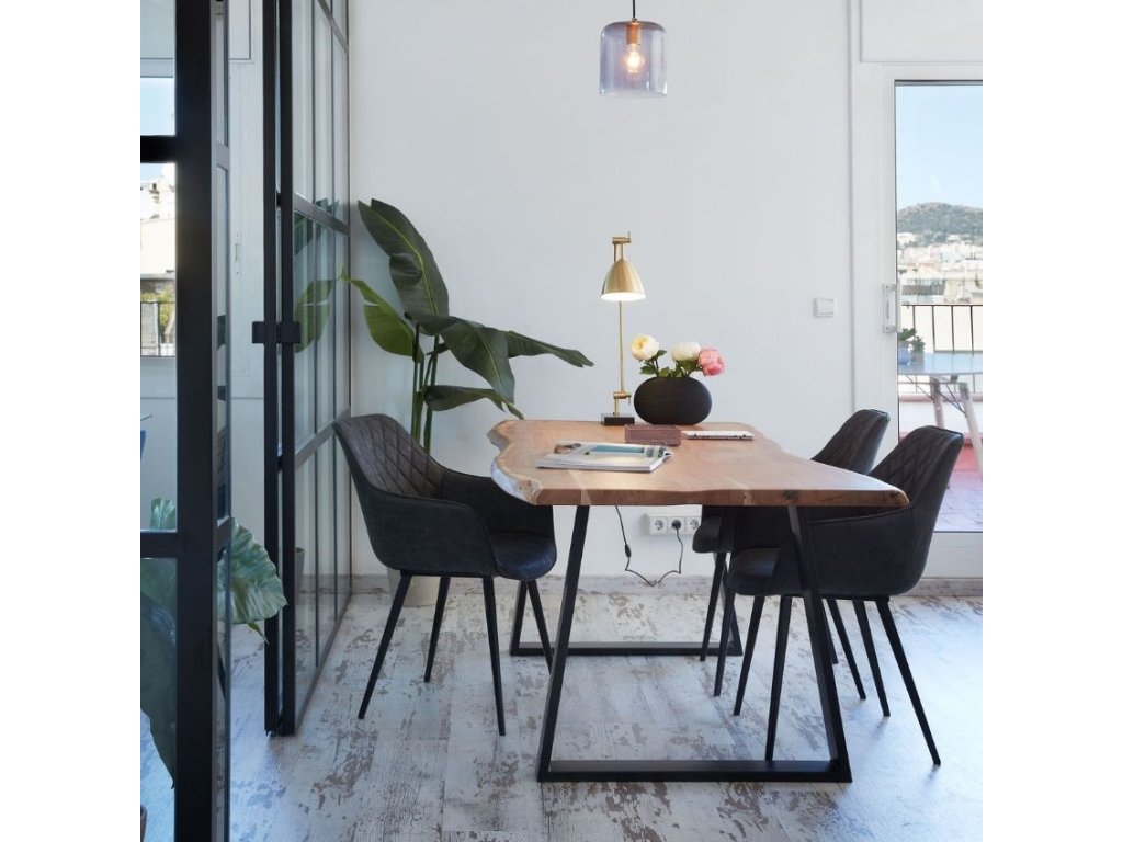 A stílusos Alaia étkezőasztal tömör akácfa asztallappal és fém talppal különösen azokat vonzza majd, akik szeretik a minőségi anyagokat és azok modern, időtlen kombinációját. A natúr lap a fekete lakkozott fémmel kombinálva tökéletes kombinációt alkot, amely ipari és rusztikus jelleget kölcsönöz a belső térnek. Az asztal körül hat étkező kényelmesen elfér. Minden egyes darab egyedi a tömör fa egyedi formái és tónusai miatt, amelyet szintén ellenőrzött fakitermeléssel, fenntartható módon kezelt erdőkből származik.