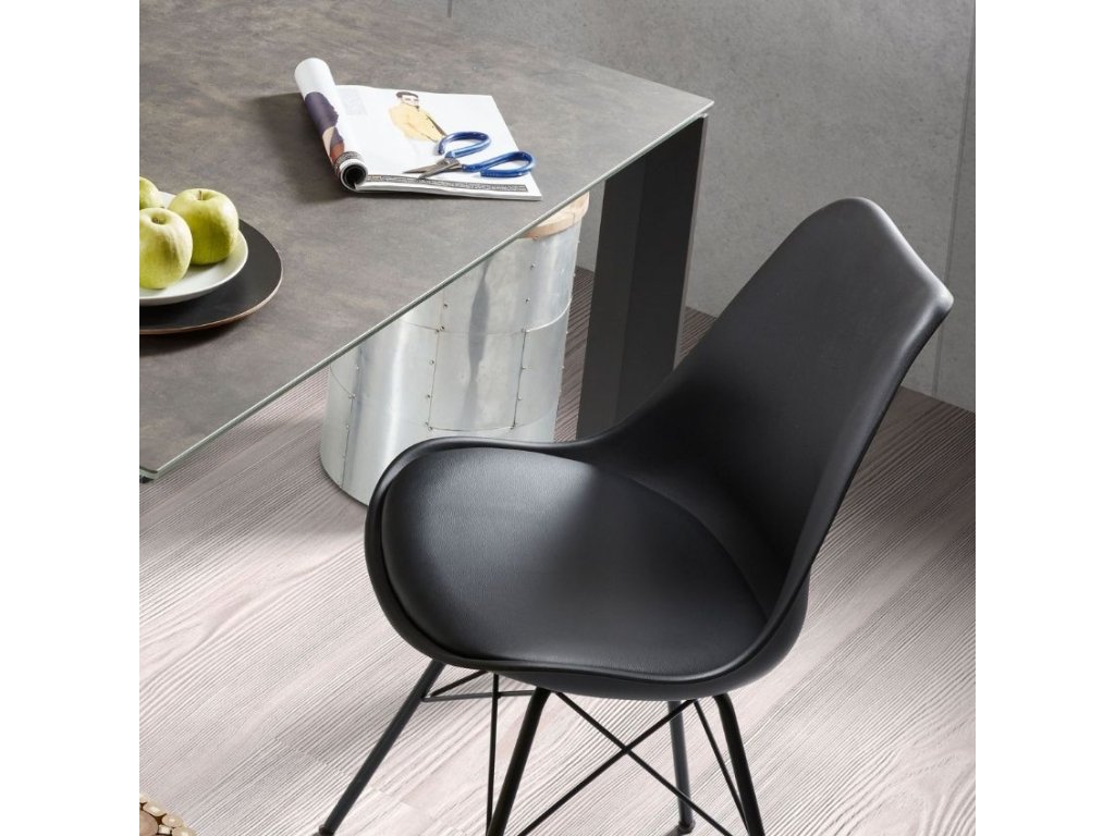 Az egyedi étkezőasztal Kave Home Axis nem csak egyedi kialakításával nyűgözi le Önt, hanem praktikus oldalát is értékelni fogja. Az asztallap porcelánból készült , üveg talapzattal,amely a a beltér ipari megjelenés. Az asztallap kihajtható, hogy nagyobb összejövetelekhez nagyobb felület et használhasson. A fekete lakkozott, masszív acél alap érdekes, ferde formával rendelkezik, ami növeli a vonzerejét. Az alap kiegészíti és fokozza az asztal általános ipari megjelenését, amely tökéletes lesz, ha a egysötét belső térrel kombináljuk.
