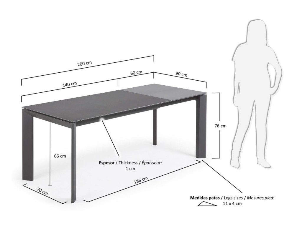 Antracit fekete kerámia összecsukható étkezőasztal Kave Home I. tengely. 140/200 x 90 cm