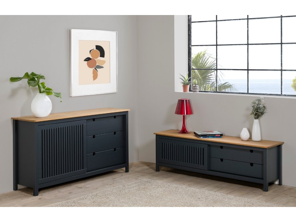 Antracit szürke fenyő komód Marckeric Bruna 150 x 40 cm