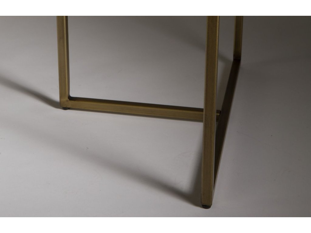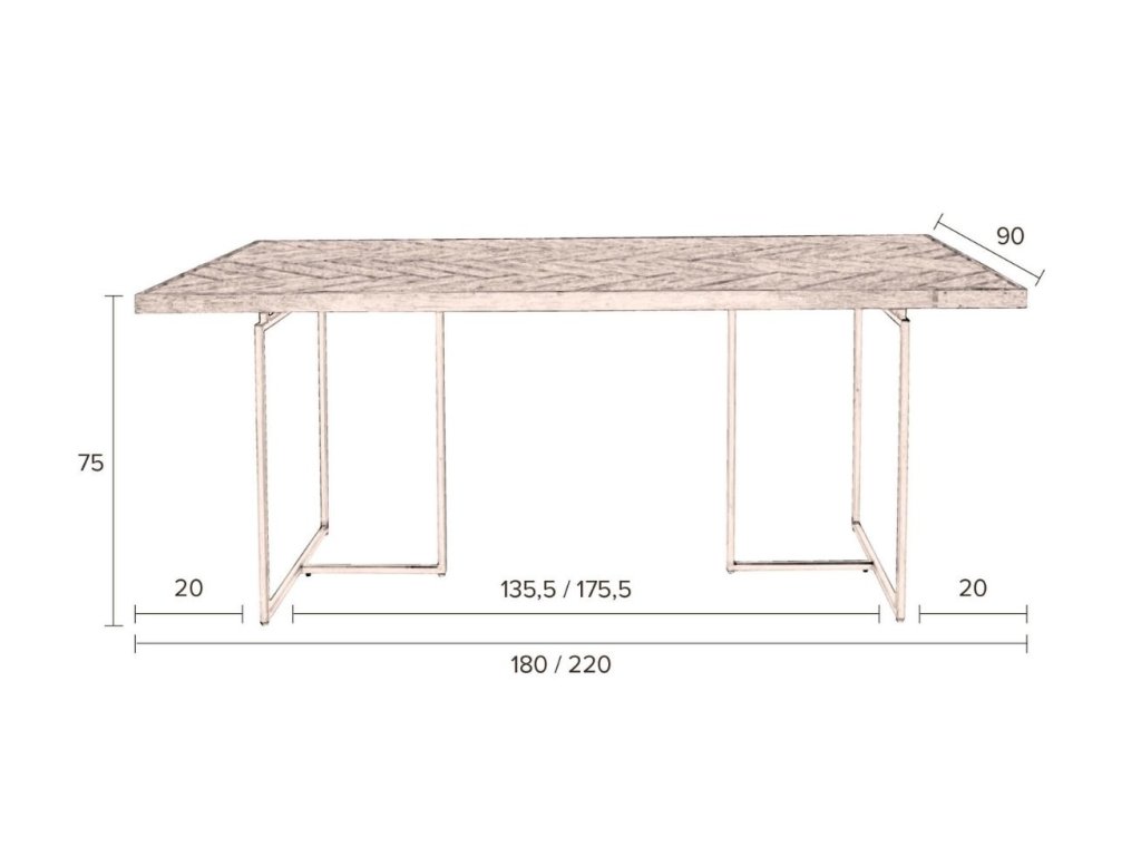 A barna Class étkezőasztal fából készült asztallapból és elegáns, vintage stílusú sárgaréz árnyalatú talapzatból áll. A halszálkás mintázatú asztallap félkemény farostlemezből készült, amelyet mindkét oldalon vékony akácfurnér lapok borítanak. A talp gumibetétekkel van ellátva, hogy megvédje a padlót a karcolásoktól. Az asztal tökéletesen összeilleszthető a sorozat többi darabjával DUTCHBONE OSZTÁLY.