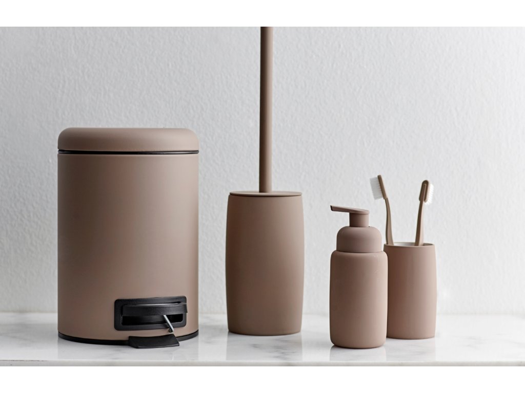 Praktikus fürdőszobai hulladékkosár Mono a dán márkától ASödahl minden modern minimalista fürdőszobábailleszkedik. A kosár fémből készült, matt gumírozott felülettel, semleges barna színben, amely világos és színes belső terekben egyaránt jól mutat. A sima felület és a monokróm színek egységes dizájnthoznak létre, amelyet fokozhat a Mono kollekció egyéb fürdőszobai kiegészítőivel . A kosár praktikus lábpedállal, puha zárórendszerrel és egy műanyag vödörrel rendelkezik, amely bármikor eltávolítható eltávolítás vagy tisztítás céljából.
