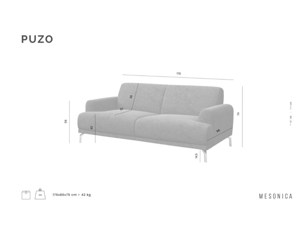 A MESONICA Puzo dizájn kanapé első látásra biztosan megragadja a tekintetet. A robusztus megjelenésű kanapé kiváló minőségű és kellemes, gyönyörű barna árnyalatú szövet kárpitozású, és stabil fém talppal van felszerelve. Ez az elegáns vonalakkal és lenyűgöző formatervezéssel rendelkező kanapé egyedi stílust visz otthonába .