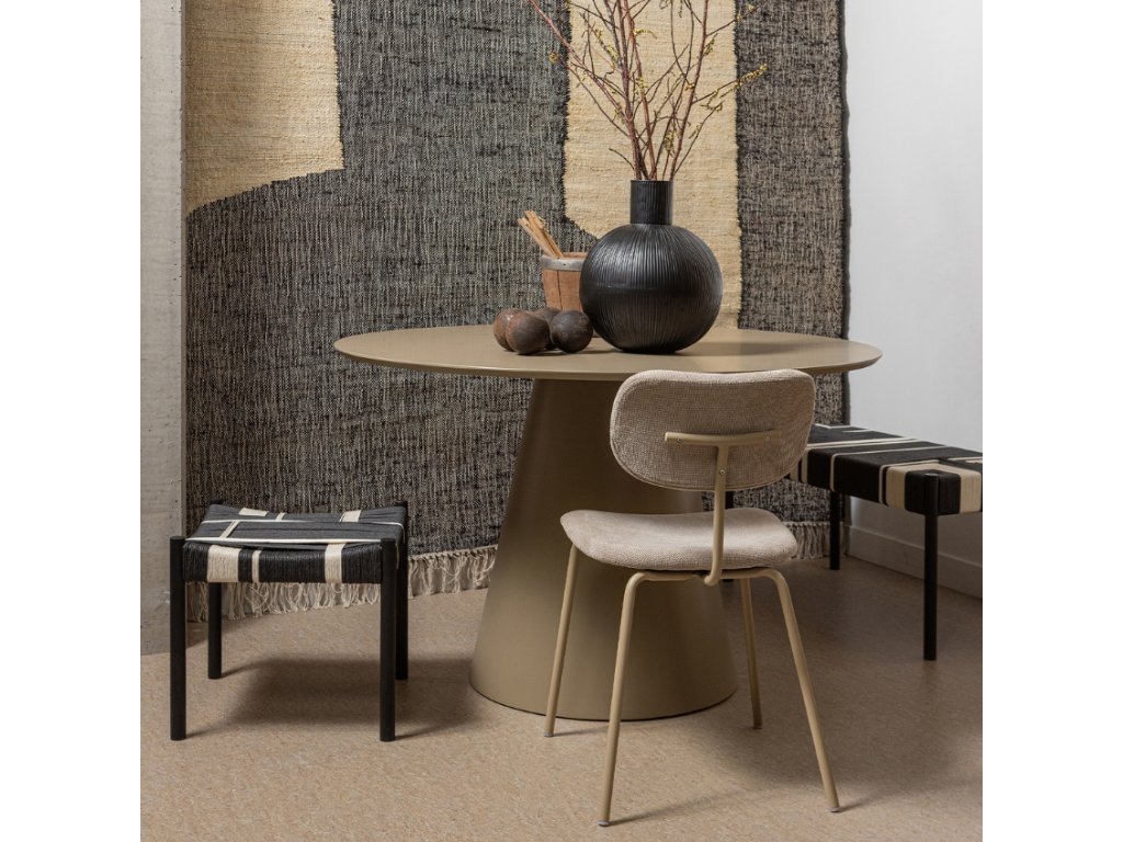 A tökéletes asztalt keresi a hangulatos étkezéshez? Akkor itt van az Orre étkezőasztal a holland márkától Hoorns. A katonai barna színű, lakkozott MDF-lap és a masszív talapzat egy vonzó egységet alkot, amely nemcsak dekoráció, hanem praktikus darab is lesz otthonában. Az asztallap kerek formája növeli az asztal otthonosságát, és kevés helyet foglal.