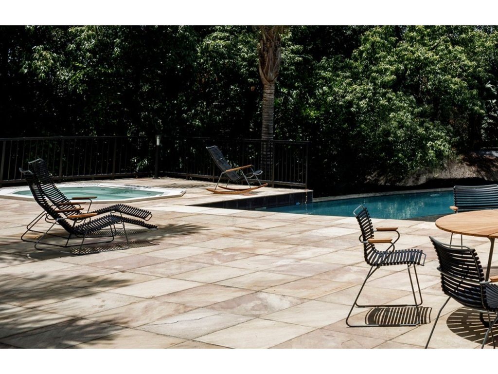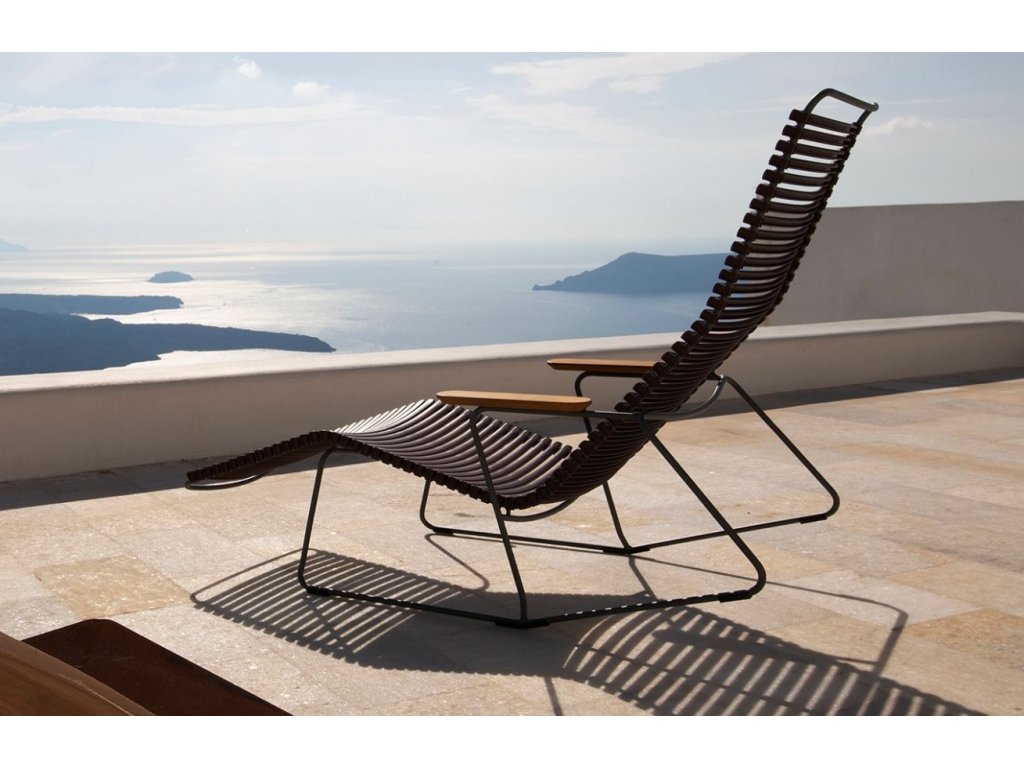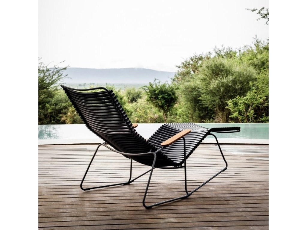A HOUE Click kerti nyugágy modern, északi stílusú megjelenésével nyűgöz le. A műanyag lécekből készült kényelmes ülés, a bambusz karfák és a fém talp együttesen egy egyedi bútordarabot alkotnak. Szép tulajdonsága, hogy a nyugágyat két pozícióban lehet elhelyezni. Egyszerű súlyáthelyezéssel eldöntheti, hogy ülve marad vagy fekve pihen. A nyugágy alkalmas kültéri környezetbe - például a medencéhez is tökéletes. A Click sorozatban székek, fotelek és lábzsámolyok is megtalálhatók, így a kültéri ülőalkalmatosságok tökéletesen összehangolhatók.