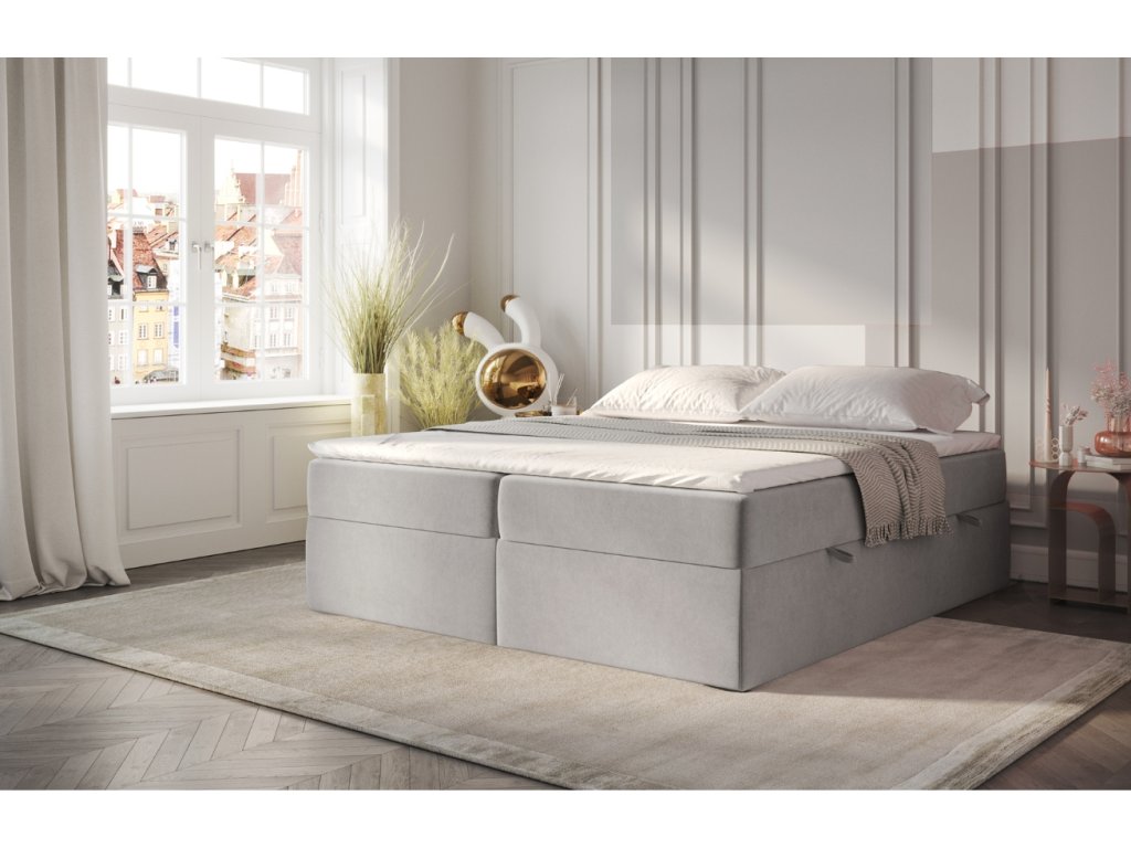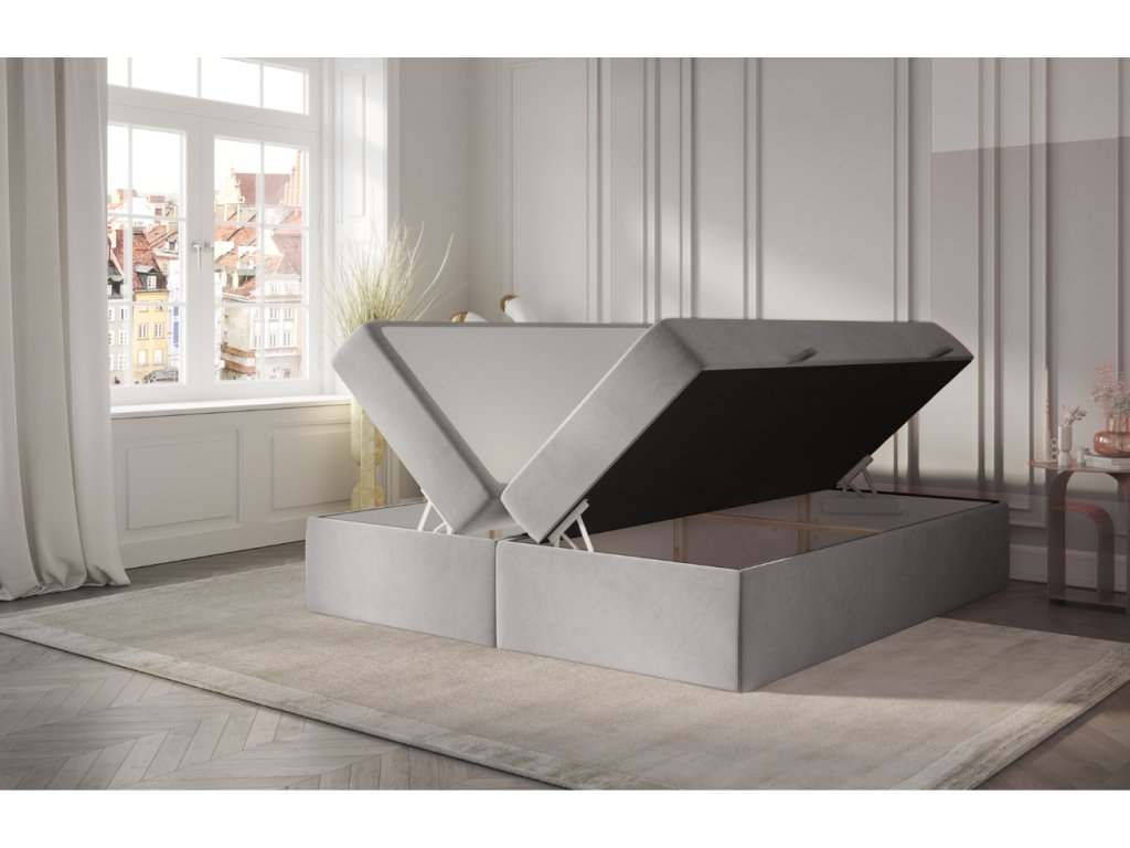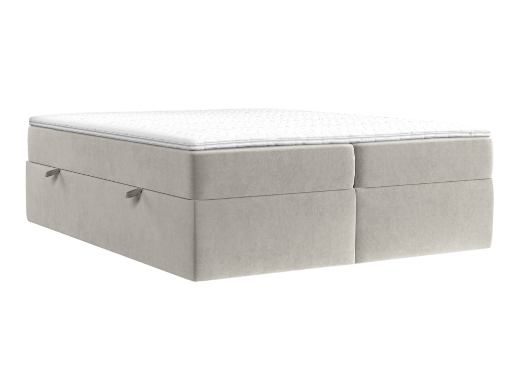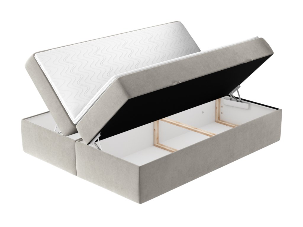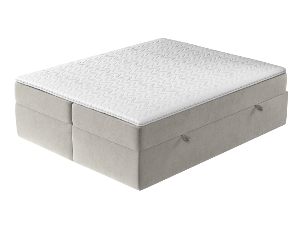 A ASH boxspring ágy a kényelem és a praktikusság tökéletes kombinációját kínálja. A Pet Friendly technológiával ellátott bársonyos szövet megkönnyíti a szőreltávolítást, amit különösen a háziállat-tulajdonosok fognak értékelni, ráadásul nagyon ellenálló a karcolásokkal szemben. A víztaszító felület védi az ágyat a nedvességtől és megőrzi frissességét. A tágas tárolórekeszek oldalsó nyitással rengeteg helyet biztosítanak ágyneműk vagy szezonális holmik tárolására. Rugós emelőkkel vannak ellátva a könnyebb kezelés érdekében. A csúszásgátló matrac és a hipoallergén anyagok garantálják az egészséges és zavartalan alvást egész éjszaka.