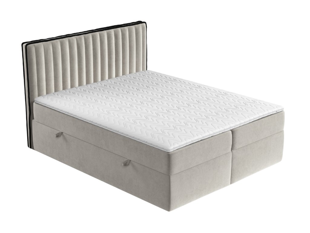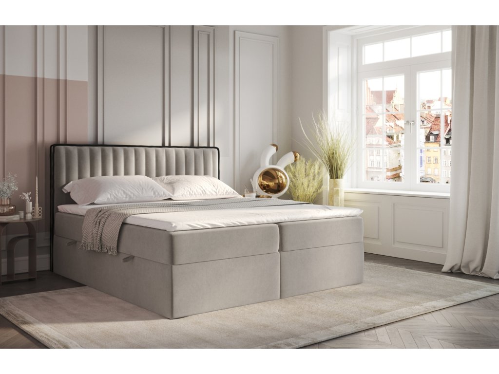 Bézs bársony boxspring ágy PILLAR 160 x 200 cm