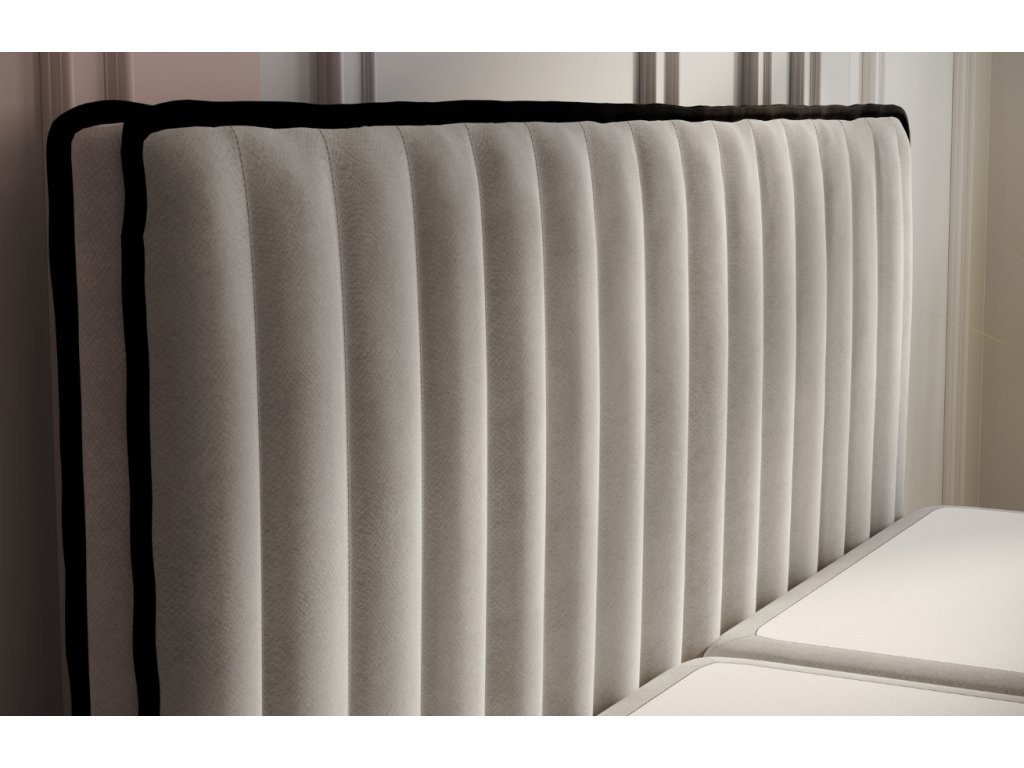 Az elegáns PILLAR boxspring ágy megjelenésével lenyűgöző, köszönhetően a fekete szegélyű, függőleges varrással ellátott fejtámlának, amely finom art deco stílust kölcsönöz a hálószobának. A puha bársony kárpitozás nemcsak esztétikus, hanem praktikus is – a Pet Friendly technológia biztosítja a szőrök könnyű eltávolítását, ami különösen a háziállat-tulajdonosok számára előnyös. A hidrofób kezelésnek köszönhetően az ágy védve van a nedvességtől. A praktikus oldalsó tárolóhelyek lehetővé teszik, hogy minden fontos dolog kéznél legyen. A közepesen kemény habszivacsból készült kétoldalas topper minőségi alvást biztosít. A PILLAR nagyszerű választás azok számára, akik a kényelmet és a stílusos eleganciát részesítik előnyben.