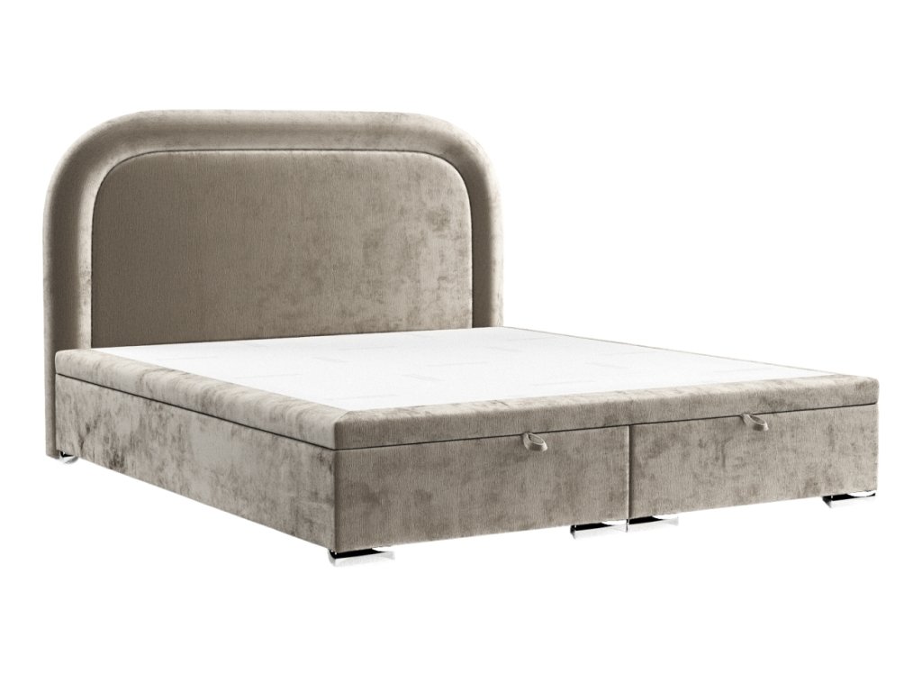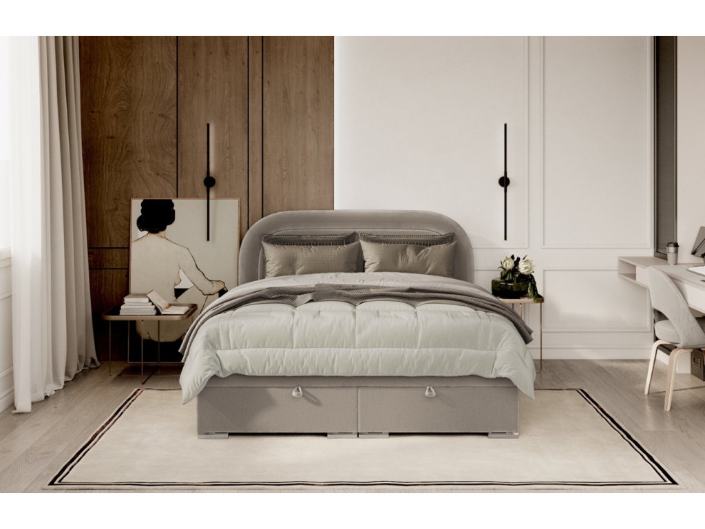 Bézs kárpitozott UFFIZI kétszemélyes ágy 200 x 200 cm ágyneműtartóval