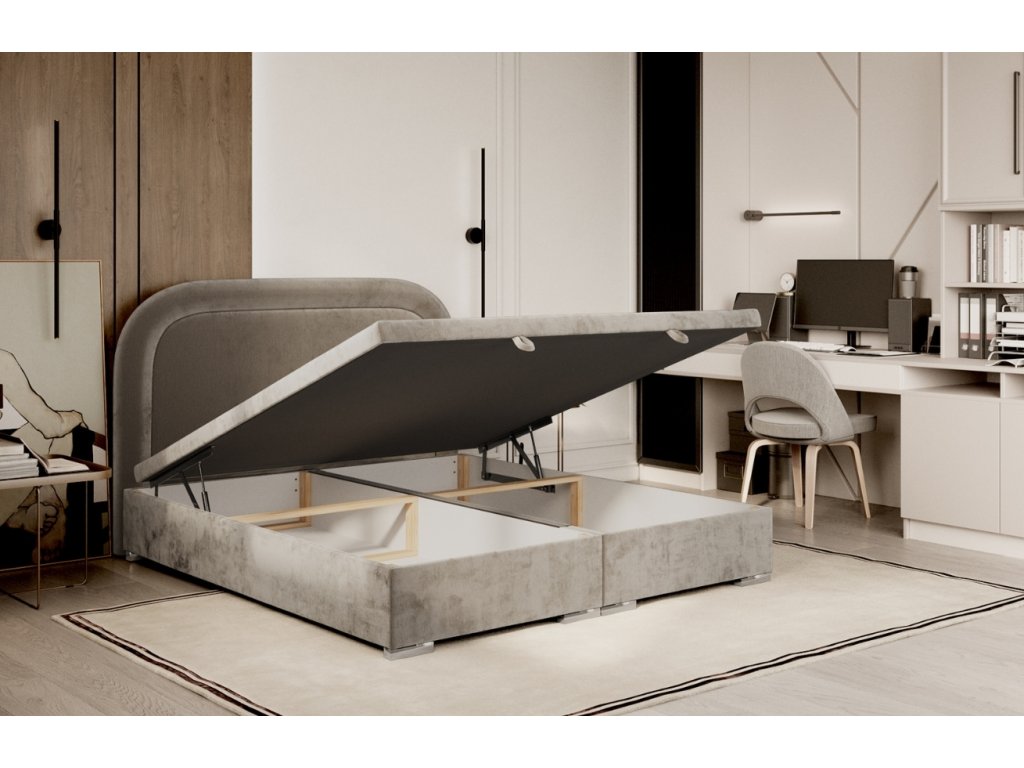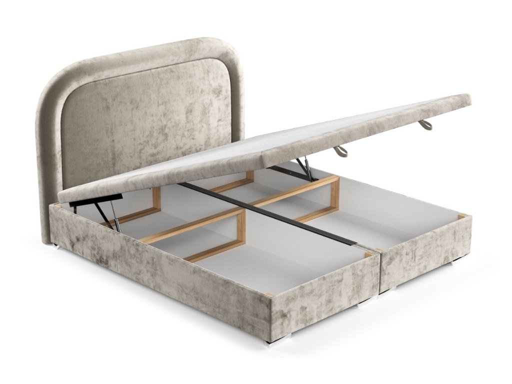 Az UFFIZI ágy eleganciát és kényelmet hoz hálószobájába egyben. A lekerekített, finom steppeléssel ellátott fejtámlának köszönhetően lágy hatást kelt, és kellemesen hangulatos légkört teremt. A praktikus, elöl nyíló tárolóhely ágyneműt vagy szezonális textíliákat tartalmaz, ami tisztaságot és rendet biztosít.A finom fényű és 3D hatású zsínelyszövet luxus megjelenést kölcsönöz az ágynak, ráadásul nagyon tartós. Az alap csúszásgátló felülete biztosítja, hogy a matrac mindig a helyén maradjon, és kényelmes és zavartalan alvást biztosít.