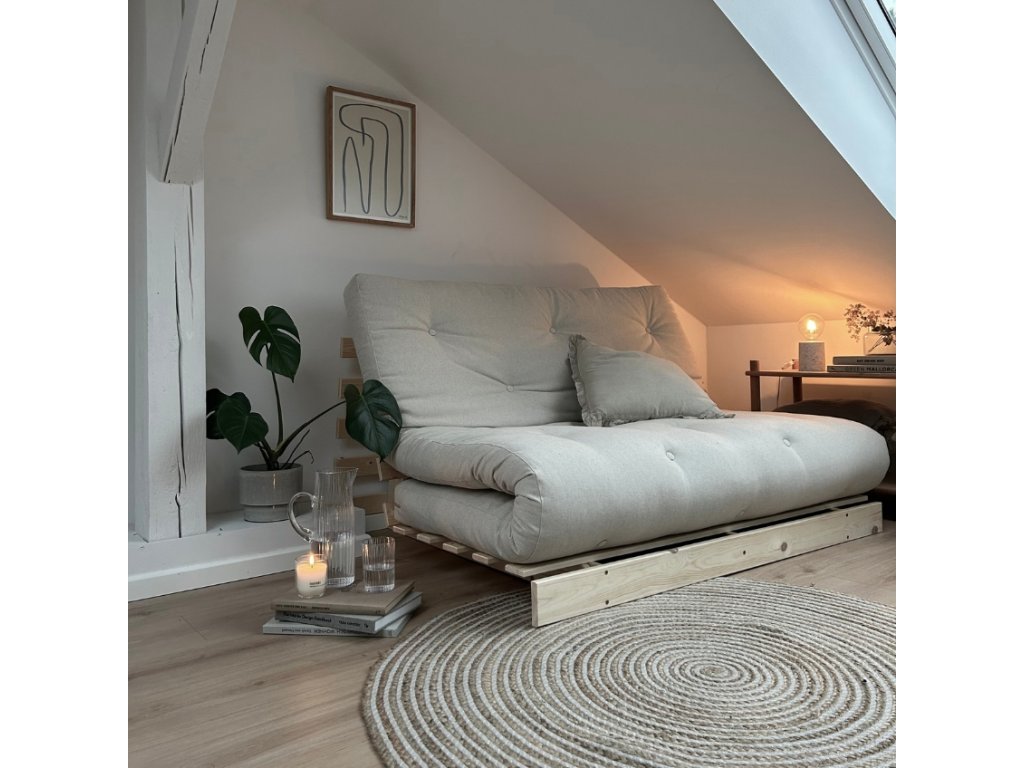 A Karup Design kétüléses Roots kanapéja kedvenc társad lesz. Ezt az elegáns és stílusos kanapét egy egyszerű mozdulattal alakíthatja át kétszemélyes, praktikus ággyá. Az FSC tanúsítvánnyal rendelkező tömör fenyőfa szerkezetet kiváló minőségű, 12 cm magas futonmatrac egészíti ki , amely újrahasznosított szálakat és 4 cm-es habot kombinál. A Roots tökéletes a skandináv stílusú otthonokhoz. Ideális például kisebb belső terekbe, ahol értékelni fogja az extra alvóhelyet. Széles színválasztékból választhat.