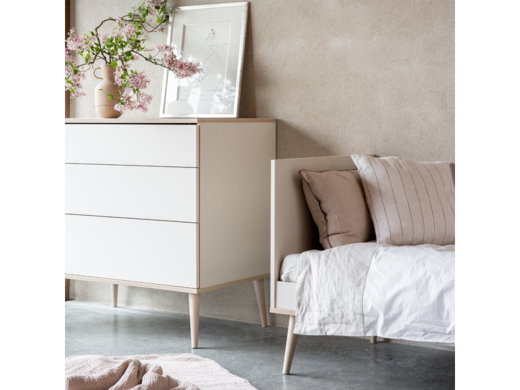 Az ágy Quax Flow egyedi darab az egyszerű vonalaknak és a légies megjelenésének köszönhetően. Az egész darab időtlen dizájnja minden kisgyermek modern és skandináv szobájában megállja a helyét. A lakkozott fa bézs árnyalata lágy és hangulatos hatást kölcsönöz a belső térnek . A magas oldalsó korlátok még a már álló, nagyobb gyermekek számára is biztonságot nyújtanak.