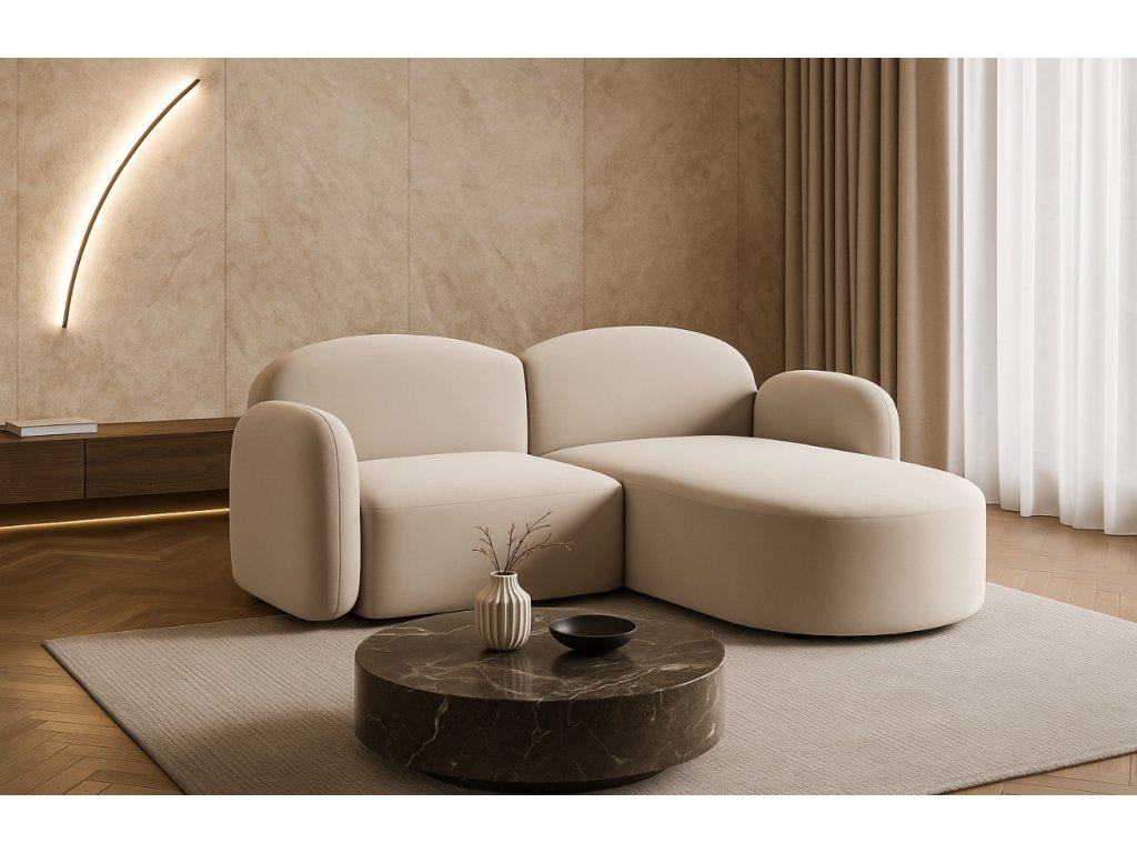 Emelje új szintre lakóterét a Blair kollekcióval. Ez a sarokba helyezhető, háromszemélyes kanapé, amelyet a részletekre való aprólékos odafigyeléssel terveztek, újradefiniálja a luxus lakótereket a klasszikus design és az ergonomikus funkcionalitás ötvözésével. A Blair kanapé szíve a finoman lekerekített háttámla és a karfa, melyek kifinomultságot sugároznak és pihenésre csábítanak. Minden egyes vonal gondosan megmunkált, hogy megtestesítse a kényelem és a stílus lényegét, így téve ezt a kanapét minden enteriőr központi elemévé. Az ülőfelület finom fényű bársonyra emlékeztető szövettel van kárpitozva. A szövetet nagy kopásállóság jellemzi, ami jelentősen csökkenti a sérülés kockázatát, ráadásul cigarettateszten is átesett, aminek köszönhetően a kanapé nemcsak háztartásokba, hanem kereskedelmi helyiségekbe is alkalmas.A Blair kanapé bársony vagy szövet kivitelben kapható.