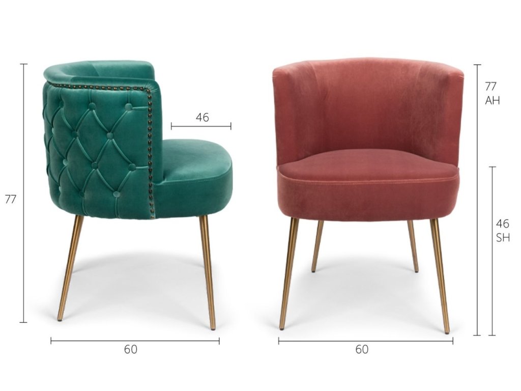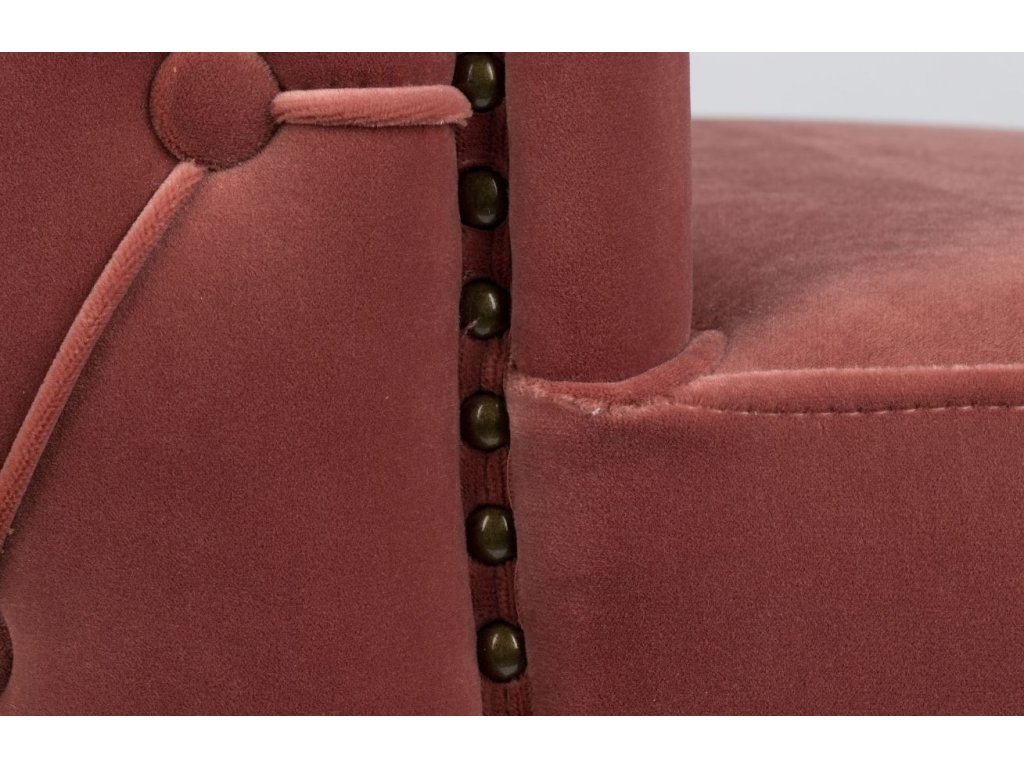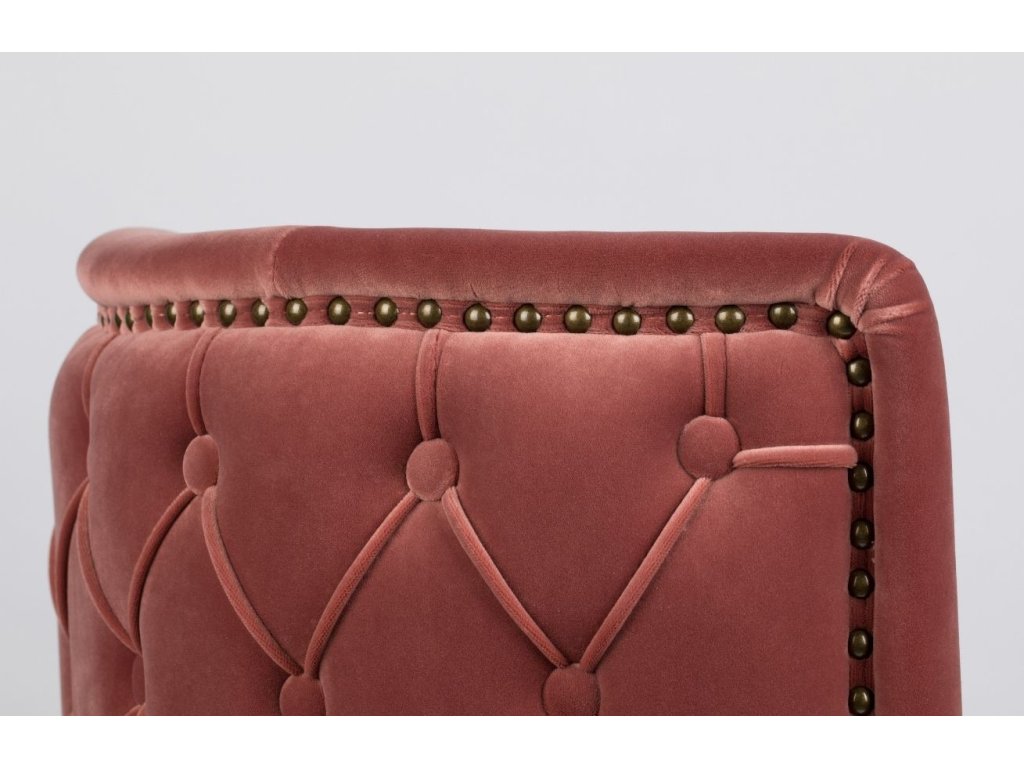 Lélegzetelállító szék Egy ilyen Stud márka Bold Monkey amit nem hagyhatsz ki! Első pillantásra a kifinomult, art deco ihletésű dizájnjával és kényelmi funkcióival nyeri el tetszését. A kellemes, rózsaszínű bársonyszövetből készült kárpitozás mellett különösen lenyűgöző a domináns és elegáns mintázat, a háttámla kerületét körbe ölelő gyémántmotívummal és az aranyszínű lakkozott fém talapzattal. Friss koncepciójának és a fent említett tulajdonságainak köszönhetően gyakorlatilag bármilyen belső térbe és dizájnkörnyezetbe illeszkedik. Örülni fog az FFRs tanúsítvány jelenlétének is, amely garantálja a bizonyos fokú gyúlékonyságot (cigaretta stb.). Ez alkalmassá teszi a széket otthoni környezetbe és különösen kereskedelmi helyiségekbe, például szállodákba, fogadótermekbe stb.