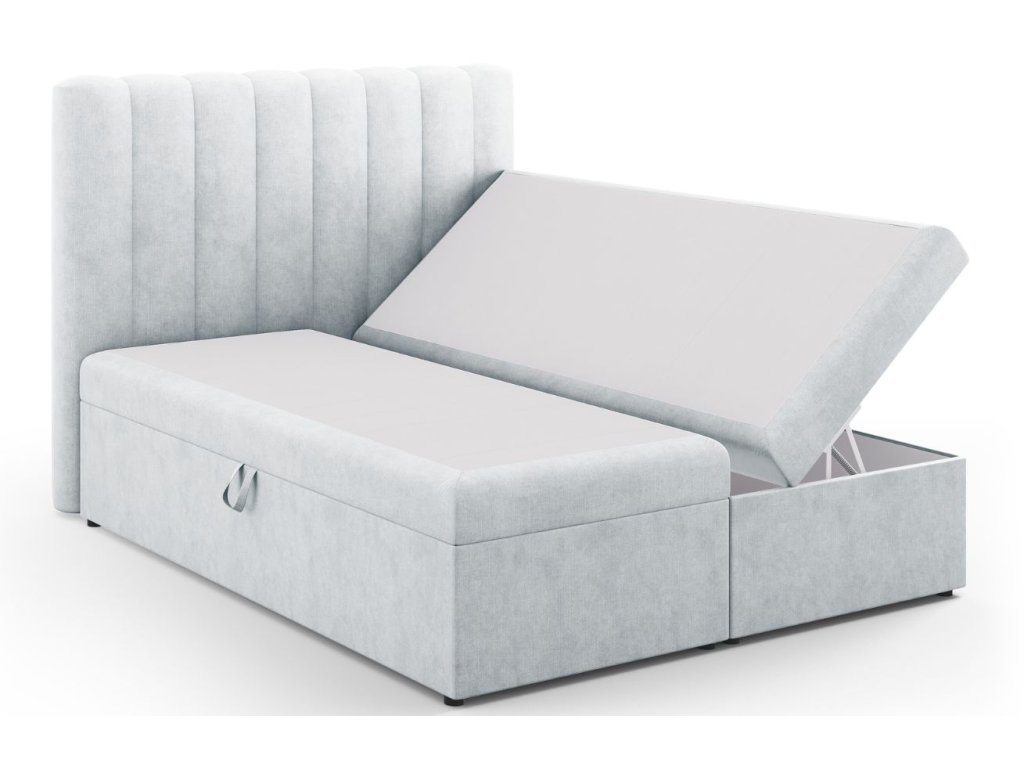 A Kelp kétszemélyes ágy modern dizájnja ötvözi a visszafogottságot és a funkcionalitást. A látható varrással ellátott kárpitozott fejtámla nemcsak kellemesebbé teszi a pihenést, hanem otthonosabbá is varázsolja a hálószobát. Az ágyhoz tartozik egy kényelmes rugós matrac, amely minőségi támaszt nyújt a testének. Az ágy része továbbá egy tárolórekesz, aminek köszönhetően soha többé nem kell azon gondolkodnia, hova tegye az ágyneműt vagy a szezonális ruhákat. Ezekhez a tárgyakhoz való hozzáférés egyszerű, mivel mindkét oldalról elérhető. Az ágy bársony vagy kárpitozott kivitelben kapható.Válassza ki az ideális méretet, amely kiemelkedik a minimalista stílusú belső térben.