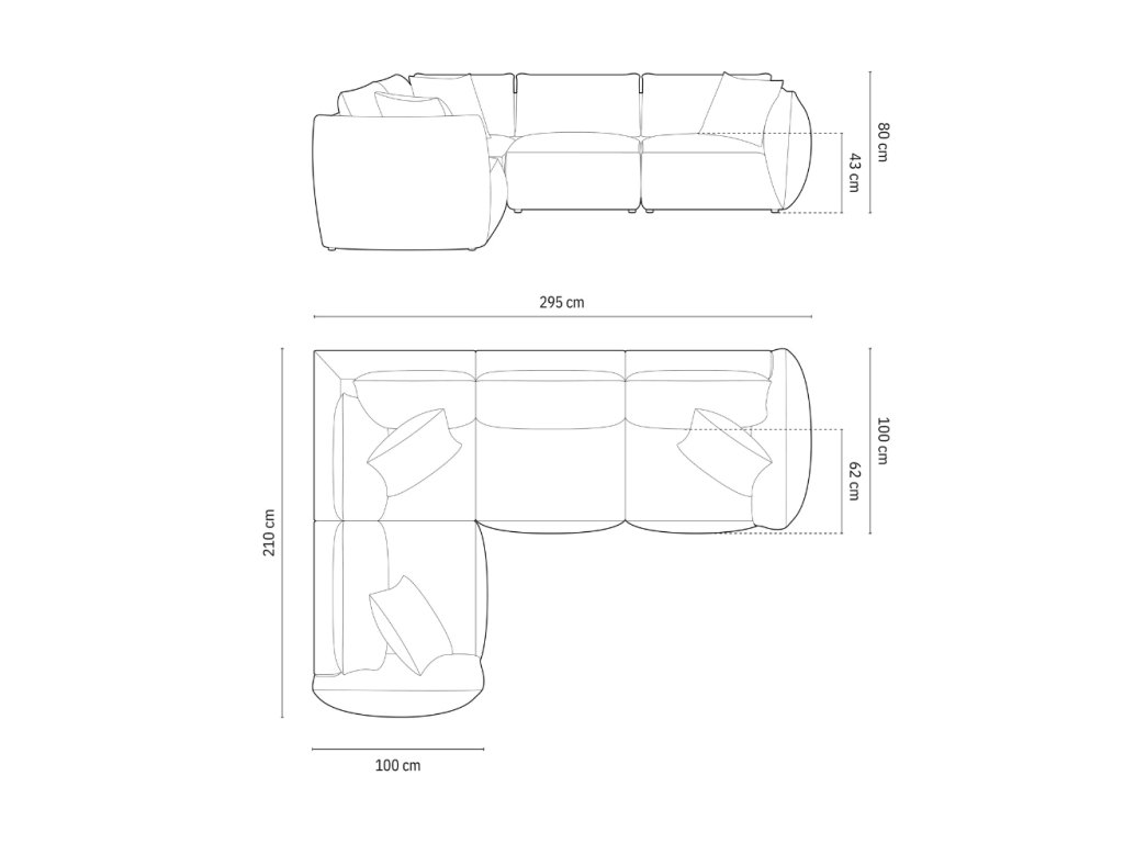 Chris bársony sarokülőgarnitúra 295 cm, balos
