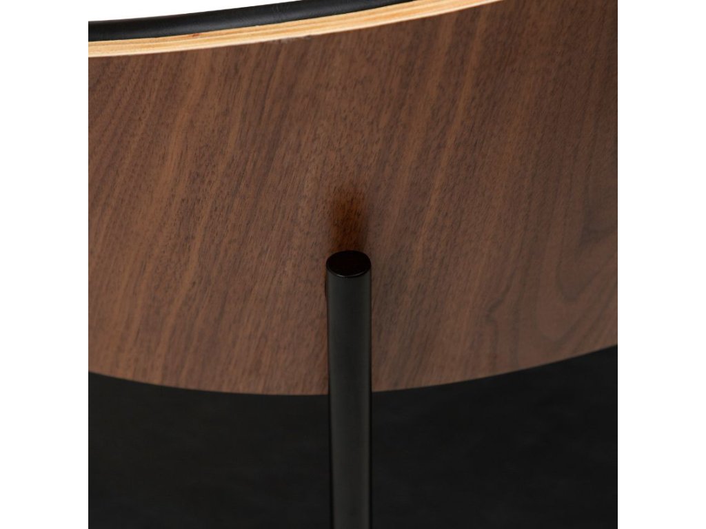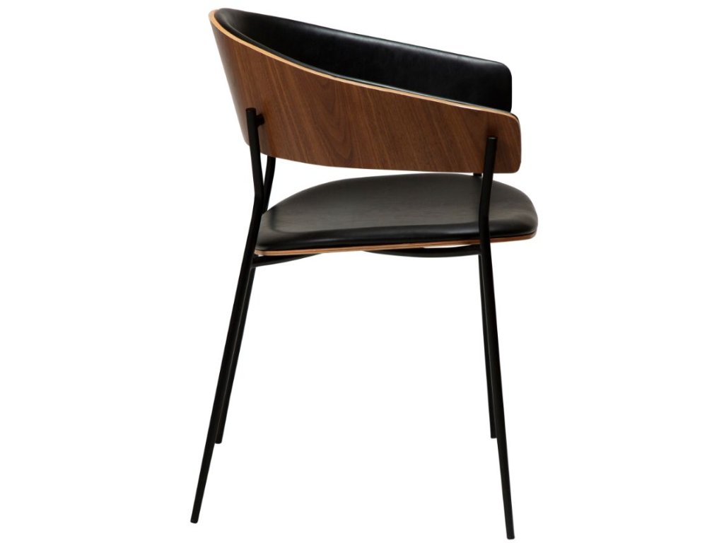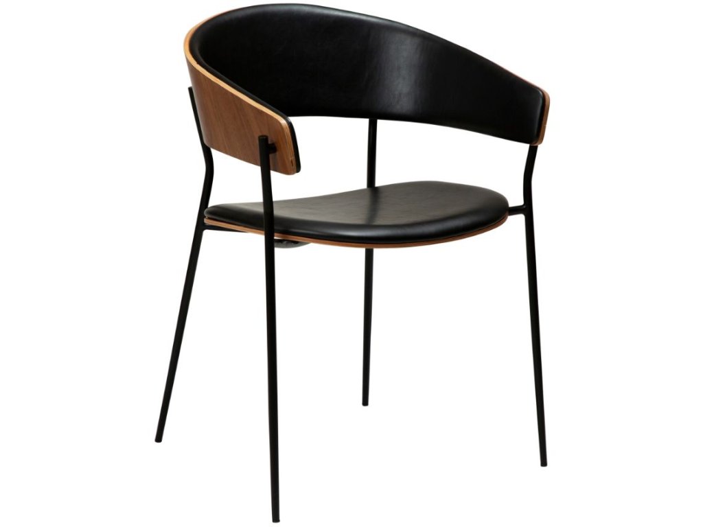 A DAN-FORM Crib chair elképesztő formatervét M. Georgsen tervező készítette. A szék ízlésesen ötvözi a diófa furnér, a fekete ökobőr és a fekete lakkozott fém kombinációját. A modern elemekkel gazdagított klasszikusok nyomait találja. A szék mindenekelőtt eleganciájával fog örömet okozni - háttámlája simán átfolyik kényelmes karfákba, és karcsú talapzat egészíti ki, amely fokozza az általános eleganciát. Ez az eredeti formatervezésű darab biztosan kiemelkedik a belső térben, és egy kis hangulatot kölcsönöz.