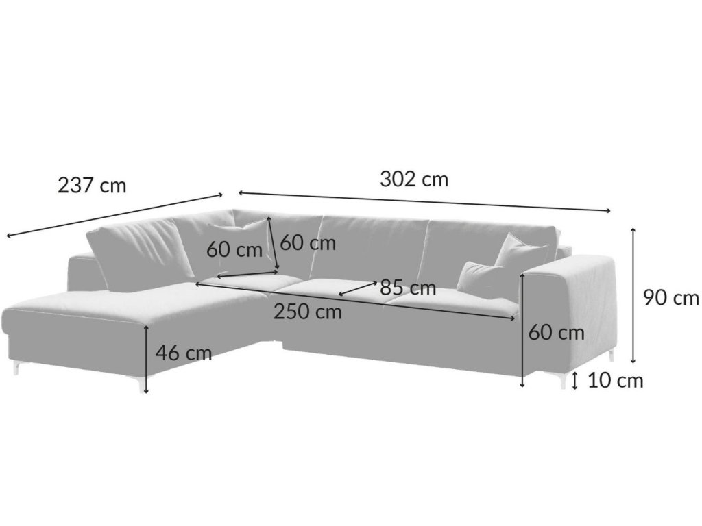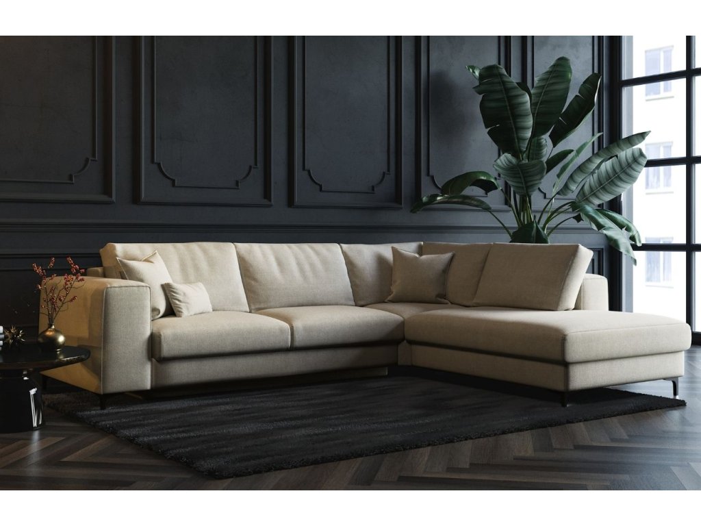 DEVICHY Rothe bézs szövet sarokkanapé, jobb oldali 302 cm