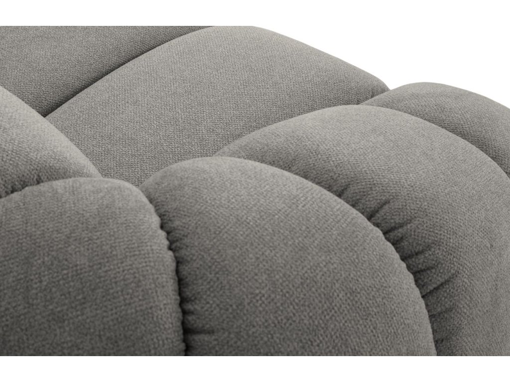 A Diana sarokkanapé nem csupán egy közönséges bútordarab, hanem egy igazi design gyöngyszem, amely összetéveszthetetlen stílust és kifinomultságot kölcsönöz a belső térnek. A szokatlan formája azonnal felkelti a figyelmet, míg a lágyan párnázott háttámlák és a karfák kivételes kényelmet biztosítanak. Az ülőfelület Bubble szövettel van kárpitozva, amely bársonyos kötött megjelenést kölcsönöz dombornyomott textúrával, ami apró csomókra emlékeztet, amelyek finom tapintásúak. Ez a szövet számos melírozott árnyalatban kapható, amelyek a fény hatására enyhén változhatnak, és hatékonyan elrejtik a foltokat. A tartósságnak és a speciális WaterBlocked rétegnek köszönhetően, amely megakadályozza a folyadékok behatolását, ideális a gyakran használt, hosszú élettartamú bútorokhoz. A Diana kollekció otthona központjává válik, tökéletes hely a pihenésre és a szeretteivel való találkozásra.