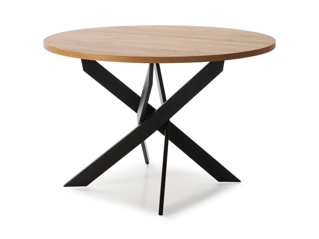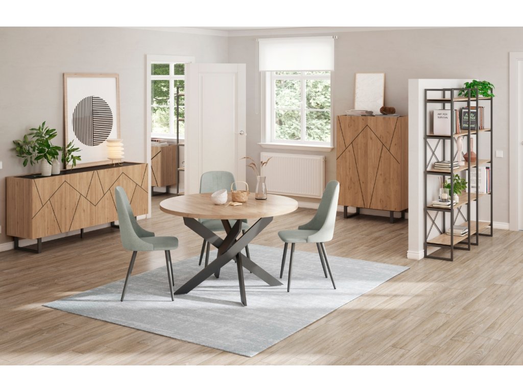 A modern étkezőasztal Marckeric Ther lenyűgöz időtlen dizájnjával , eredeti alappal. Keresztbe tett fémrudakból áll, amelyek egy diószínű laminált lapot támasztanak alá. Az asztal eleganciát és stílust kölcsönöz otthonának. Különösen alkalmas skandináv vagy ipari belső terekbe.