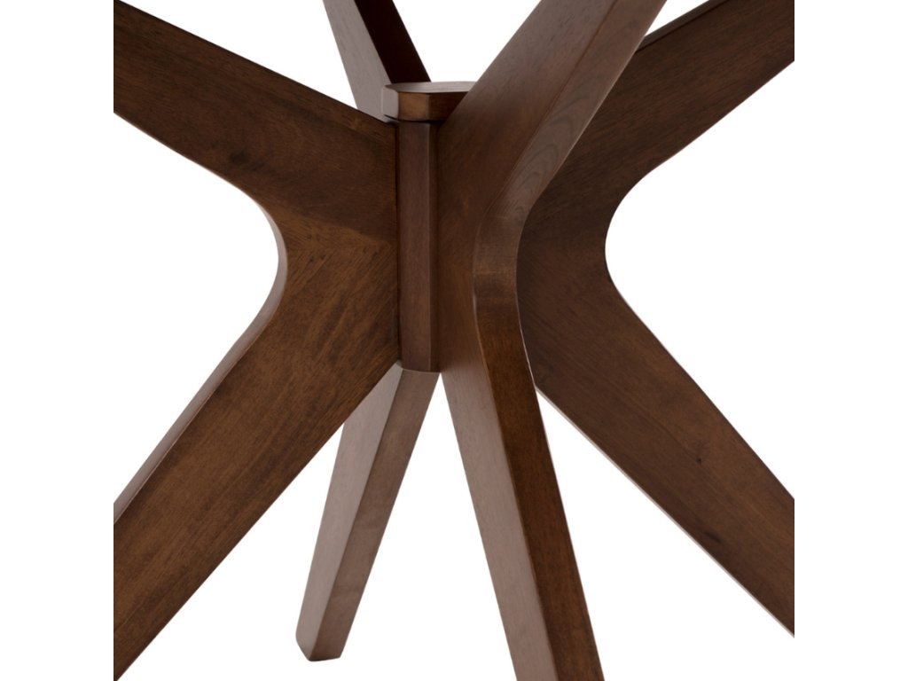 A négyszemélyes, kerek, diófából készültCarmel asztal finom részletességgel kidolgozott műalkotás. A 2 cm-es tömör diófa asztallap gyönyörű csillagmintával rendelkezik, amelyet az asztal maximális stabilitását garantáló ívelt talapzat egészít ki. A Carmel kiváló választás minden ízlésesen berendezett belső térbe.