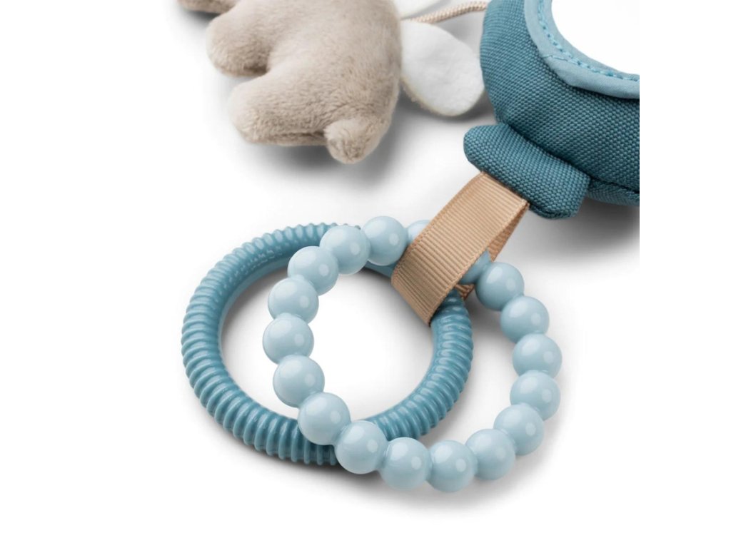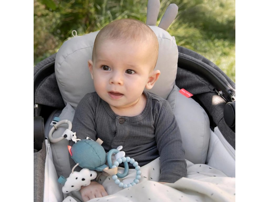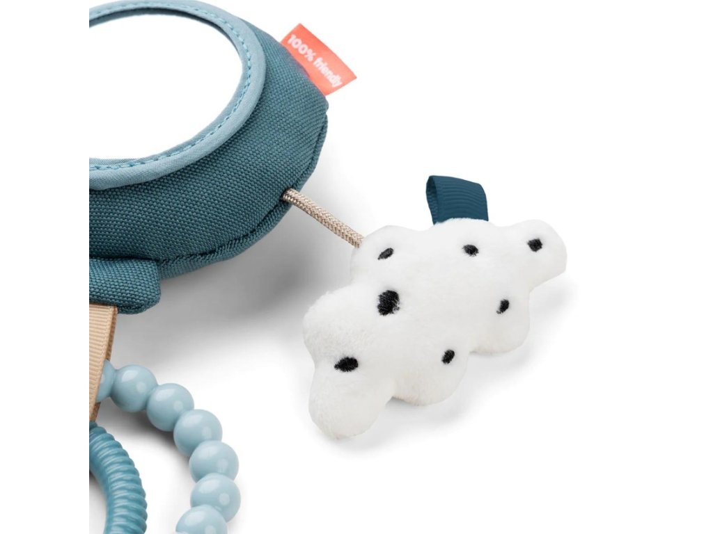 Interaktív szövet játék Happy Clouds a Done by Deer segít a kisbabának fejleszteni a motoros készségeket, miközben elkezdi felfedezni a világot. A tükör és a kék lufi csörgő szórakoztatja a babát, miközben felfedezi a kis arcát. A szárnyas Ozzo cuki víziló, a pöttyös, puha felhő és a kék textúrájú gyűrűk segítik a baba tapintási és vizuális készségeinek fejlődését. A műanyag gyűrűnek köszönhetően a játékot a kiságyra, babakocsira vagy autósülésre akaszthatod.