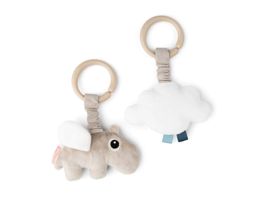 A Done by Deer webáruházból származó Happy clouds függő szövetjátékok tökéletes kiegészítői a babakocsinak. A bújós víziló Ozzo varázslatos szárnyakkal csörgővel van ellátva, amely finom csörgő hanggal szórakoztatja a gyerekek fülét, a felhő finoman zizeg, ha összenyomod. Mindkét játékon szövetcímke van, ami kellemes a gyermekek ujjai számára. A játékok könnyen felakaszthatók a babakocsira, az autósülésre vagy a járóka mellé.