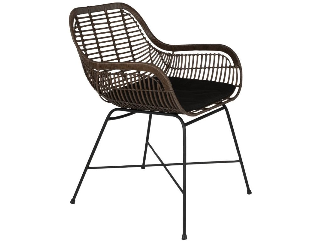 A DUTCHBONE Cantik rattan kerti szék szépsége a sötétbarna színben rejlik. Ez a kialakítás környezetbarátabbá teszi az étkezőszéket. Lenyűgöző lesz az egyszerűség és az elegancia, amely szinkronban van a fekete lakkozott fém talapzattal és a padlót a karcolásoktól védő gumicsúszkákkal. Ez a szék különlegessé teszi a kertben vagy a teraszon töltött pillanatokat. Kiegészítőként a csomagban található kellemes, puha ülőpárna biztosan felhívja magára a figyelmet.
