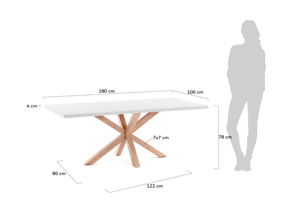 Gyönyörű és időtlen étkezőasztal Kave Home Argo első látásra lenyűgözi Önt eredeti és kifinomult kialakításával. A tökéletes stabilitást biztosító talapzat természetes fából készült acélból készült, és érdekes csillag alakú. A felső rész fehér laminált, és tökéletesen kiegészíti az alapot. Ez az asztal remekül mutat például a skandináv stílusban berendezett belső terekben.