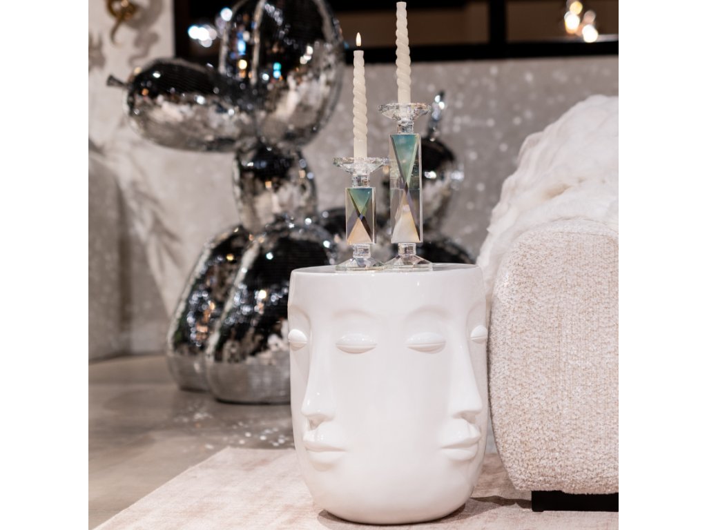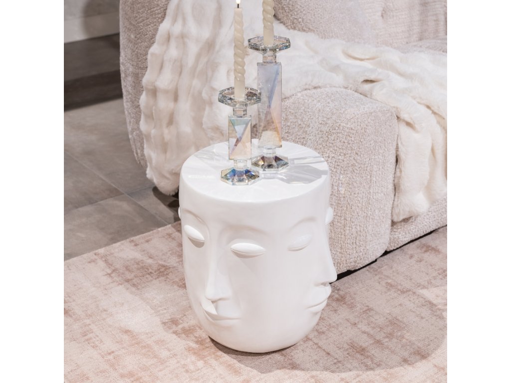 A Richmond márkaChristy kisasztala kötelező! Egyedi, arcok formájában megjelenő formája kiemelkedik a dizájnelemekre büszke belső terekben. A gyantából készült szerkezet fehérre van festve, ami eleganciát és tisztaságot kölcsönöz a térnek. A Christy asztal arany színben is kapható. Vedd körül magad dizájner bútorokkal, amelyek a következő szintre emelik a belső teret!