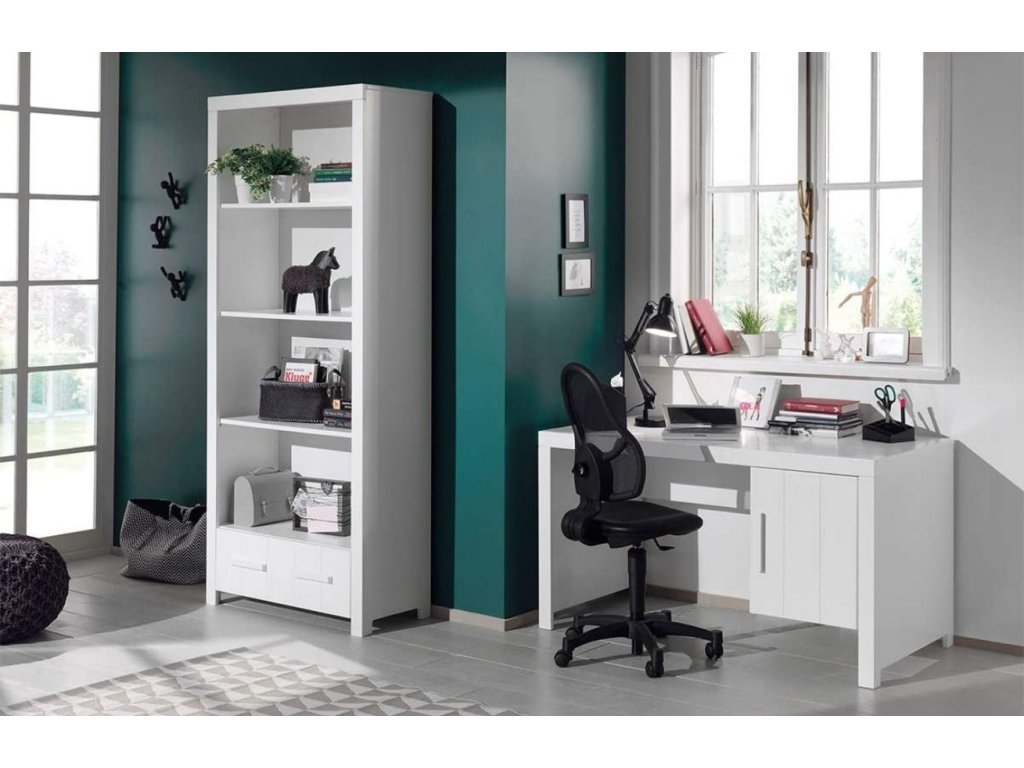 A fehérre lakkozott MDF-ből készült íróasztal Vipack Erik friss és letisztult dizájnjának köszönhetően bármely gyermek- vagy diákszobába illik. Az asztal az Erik sorozatból származik, amelyben olyan termékek széles választékát találja, amelyek segítségével berendezheti az egész gyermekszobát. A teteje alatt praktikus tárolóhelyet talál egy két polccal ellátott szekrény formájában. Ezek egy ajtó mögött rejtőznek, amely a népszerű soft close rendszerrel záródik.