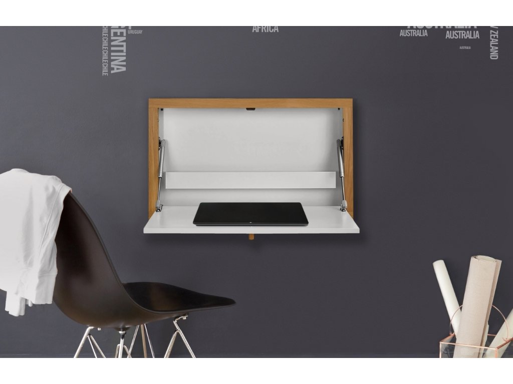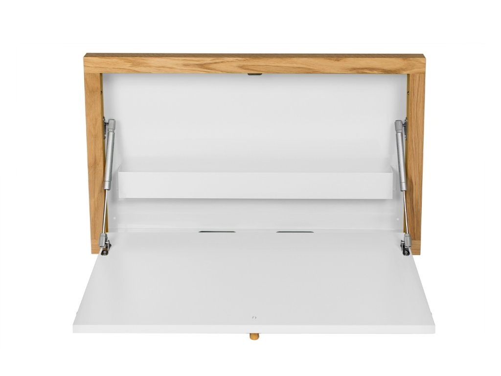 A Woodman Brenta billenő íróasztal stílusos módja annak, hogy kis belső terekben helyet takarítson meg , és mégis bőven legyen hely a munkához. Ennek az okosan megtervezett asztalnak a külső váza tömör tölgyfából készült. A fehérre lakkozott MDF-ből készült, csuklós teteje a hátsó, fehérre lakkozott fémfalhoz van rögzítve, amely egy kisebb tárolórekeszt is tartalmaz, ahol apró tárgyait tárolhatja. Ennek az asztalnak a dizájnját és praktikusságát különösen olyan belső terekben fogják értékelni, ahol a hely szűkös.