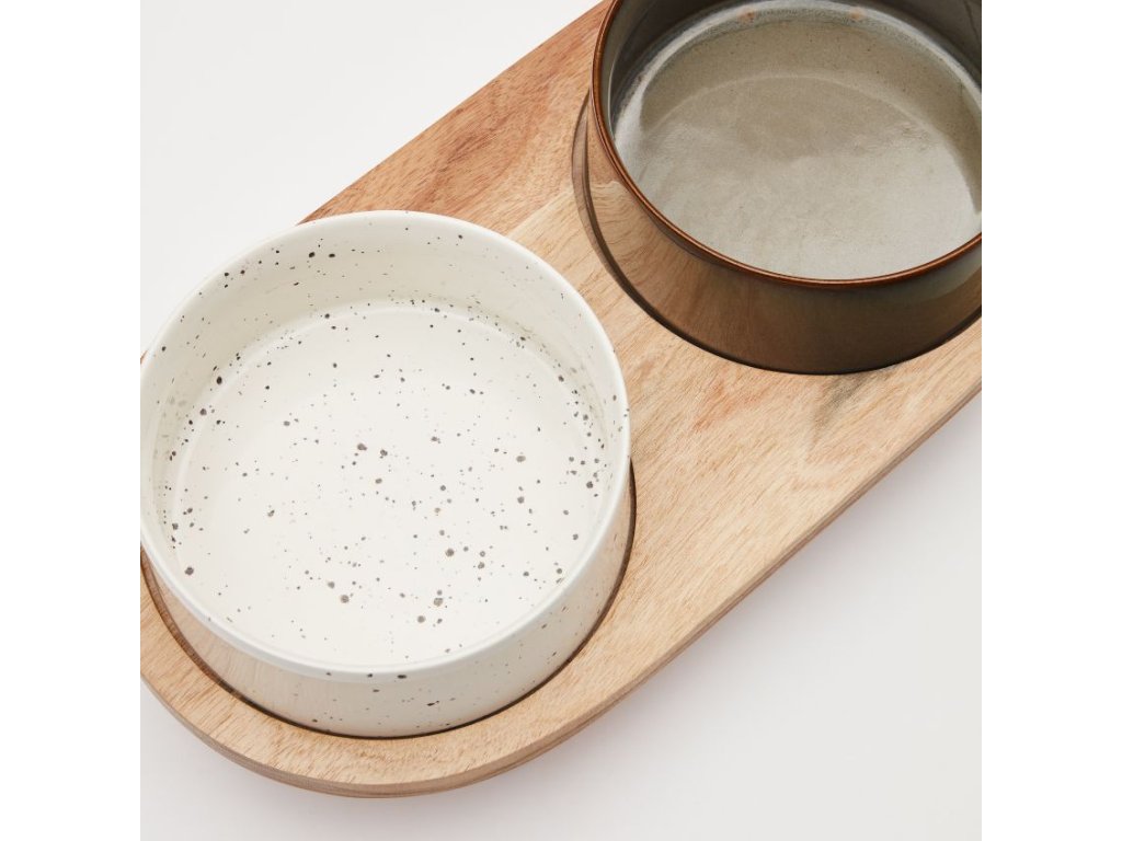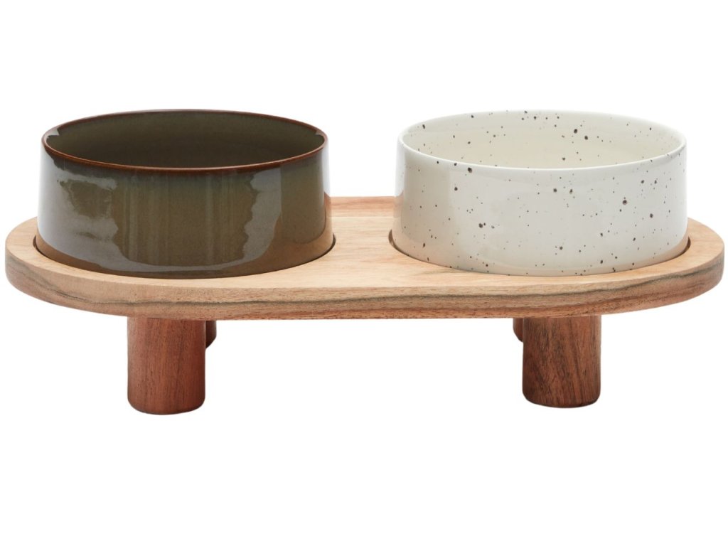 A Dumbi kisállat tál készlet két kerámia tálat tartalmaz - egy zöld és egy fehér, apró pöttyökből álló motívummal. A tálakat akácfa állvánnyal szállítjuk, ami által szőrös barátja még jobban, és ami a legfontosabb, egészségesebben élvezheti az ételét. A tálak emelése több okból is előnyös a kutyák számára. Az étel emésztése javul, csökken a gyomorcsavarodás kockázata, és a háziállat ízületei kevésbé terhelődnek. Emellett a Dumbi elegáns kialakítású, és egy kis természetet visz a térbe.