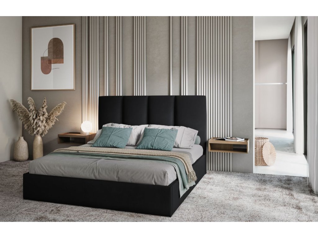 Fekete bársony franciaágy MICADONI Pyla 140 x 200 cm tárolóhellyel
