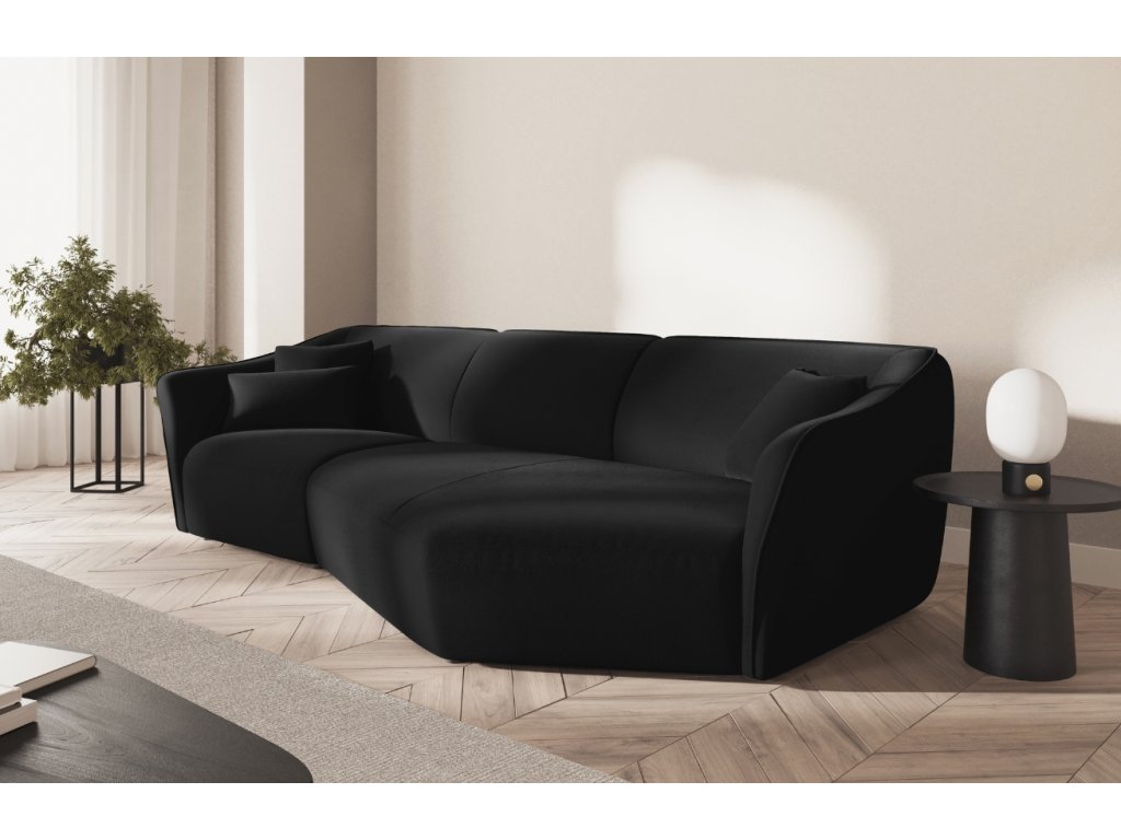 Fekete bársony ötszemélyes kanapé Cosmopolitan Design Tokyo 292 cm, jobb