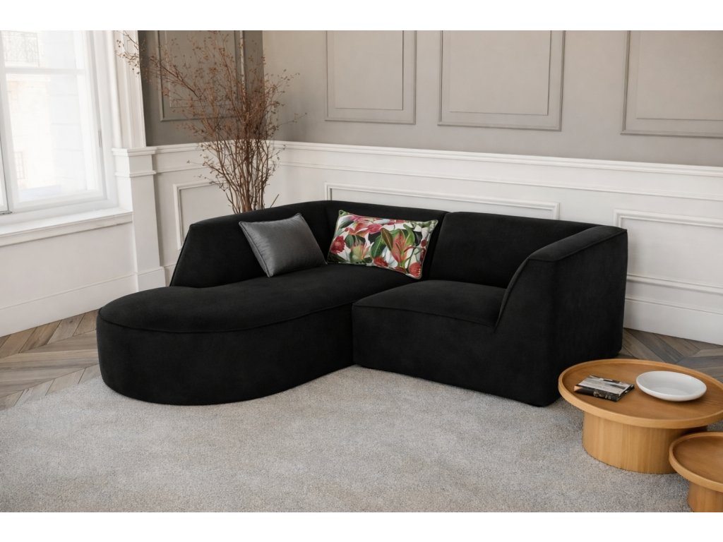 Fekete bársony sarokkanapé CXL Charles 186 cm, balra