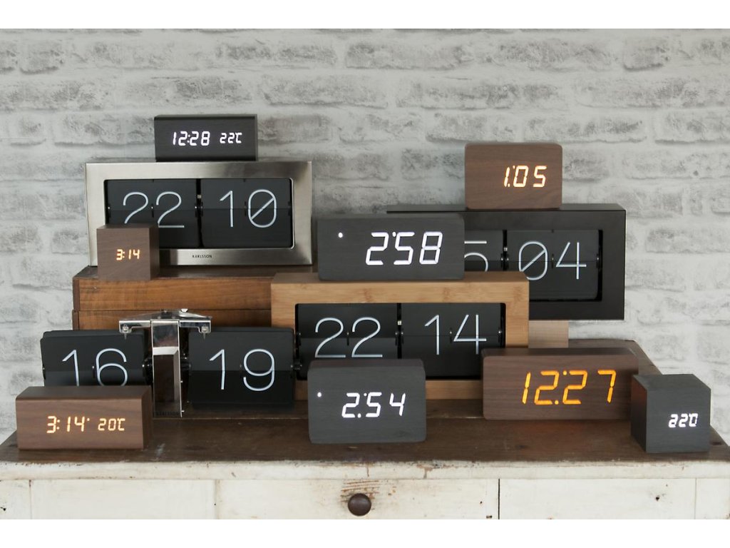 Fekete fa ébresztőóra Level II. fehér LED kijelzővel