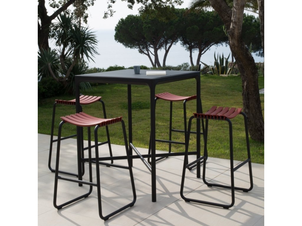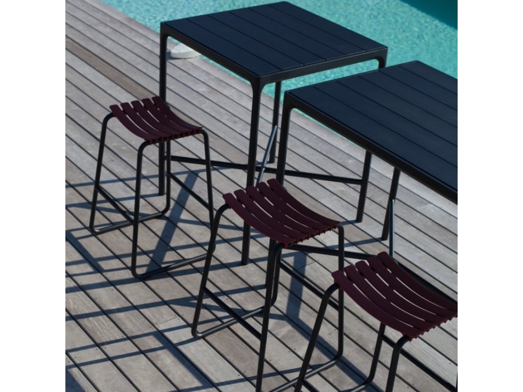 HOUE Four natural bárasztal alumínium lécekkel ellátott asztallappal és fekete lakkozott talapzatával egy modern, minimalista asztal, amely nagyon jól kiegészíti a ipari elemekkel és modern dizájnelemekkel rendelkező belső tereket. Haegy stílusos étkezőasztalt keres egy kisebb konyhába, a teraszra vagy a kávézó, étterem vagy bár nyilvános helyiségébe, ez az asztal kiváló választás.