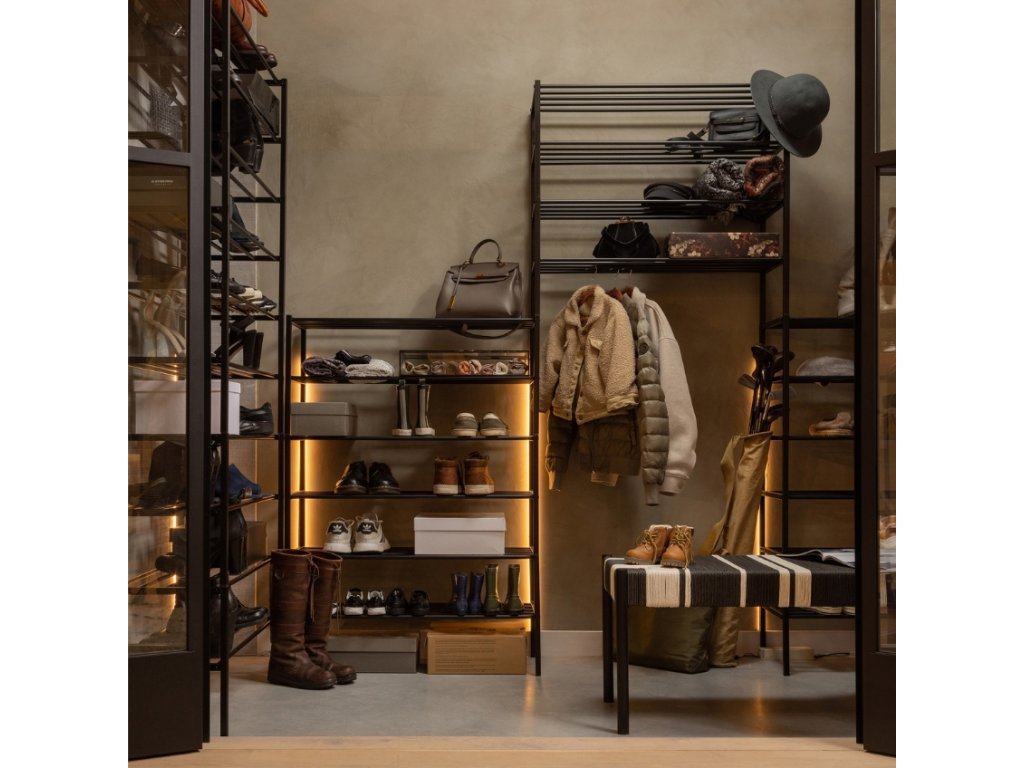 A modern Mahon fém cipőtartó a Hoorns webáruházból sokoldalú segítője lesz otthonának. Fémszerkezetét fekete porfestékkel látják el, amely védi a fémet és luxus megjelenést kölcsönöz a cipőtartónak. Az egymásra rakhatóságnak köszönhetően ez a designdarab rendkívül funkcionálissá válik, és tetszés szerint bővíthető. Nemcsak a cipők, hanem az olyan divatos kiegészítők, mint a kézitáskák, kalapok és sálak tárolására is további helyet kap. Egyszerű kialakításával illeszkedik a minimalista, modern és ipari enteriőrökbe.