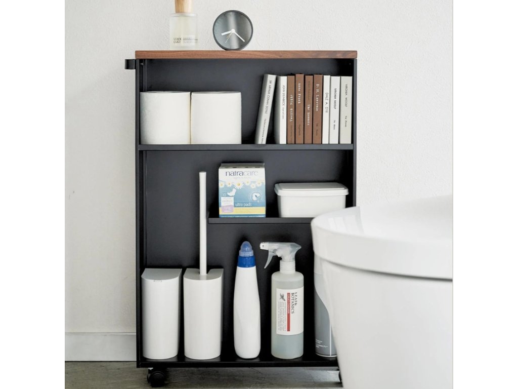 A Yamazaki Tower mobil polc ideális megoldás minden olyan fürdőszobában, ahol praktikus és stílusos tárolási lehetőségekre van szükség. Minimalista kialakításának és a fekete lakkozott fém és a bükkfa kombinációjának köszönhetően a polc stílusos kiegészítője lesz bármely belső térnek. A polc ideális az olyan higiéniai kellékek, mint a samponok, tusfürdők, szappanok, törölközők és egyéb fürdőszobai kiegészítők rendszerezésére. Keskeny méreteinek köszönhetően a polc kisebb fürdőszobákba is alkalmas, ahol helyet takarít meg, és bőséges tárolóhelyet biztosít az egészségügyi kellékeknek. A görgőknek köszönhetően a polc könnyen mozgatható, így rugalmasan elrendezhető az aktuális igényeknek megfelelően , és megkönnyíti a fürdőszoba tisztítását.