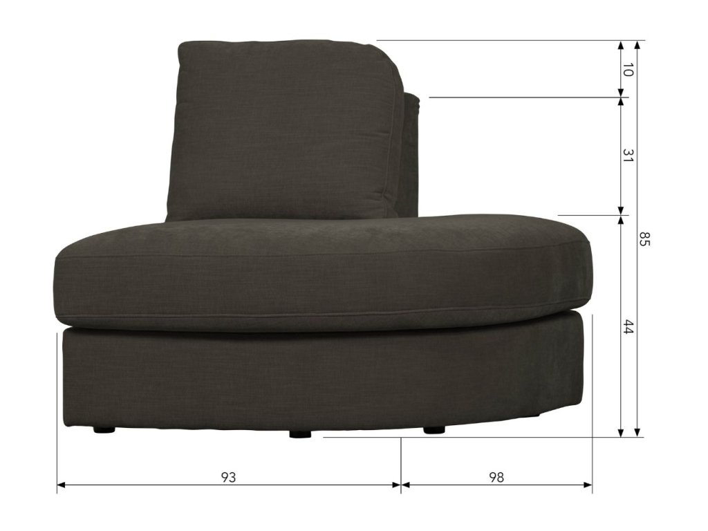 Flaireen antracitszürke szövet végmodul 93 cm, jobb