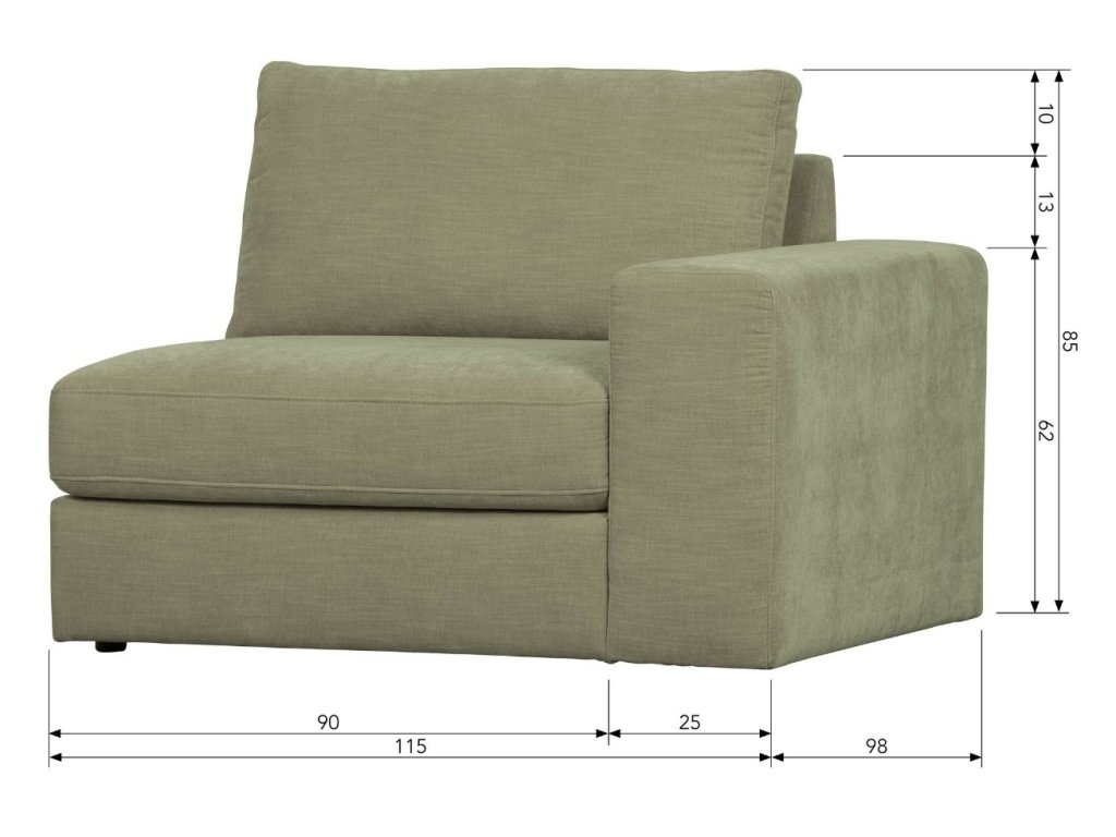 Flaireen zöld szövet végmodul 115 cm, jobb