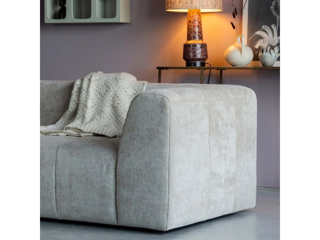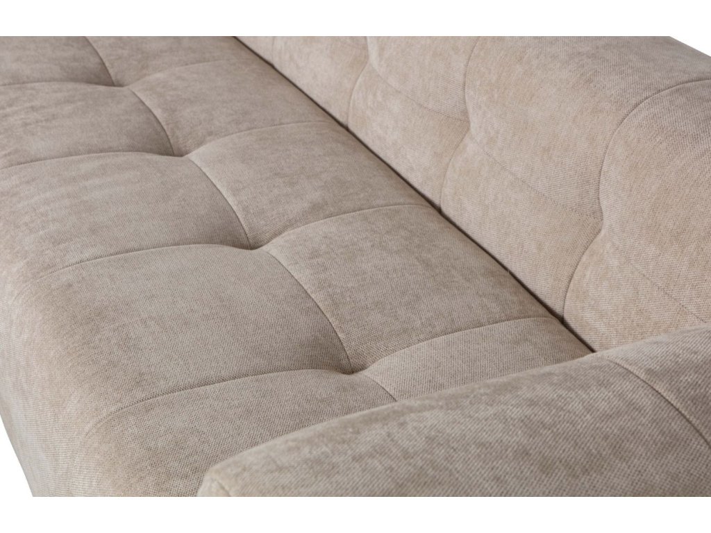 A Gorda sarokkanapé kompakt kialakításának köszönhetően maximális kényelmet nyújt. Homokbarna kárpitozása kiváló minőségű zseníliaszövetből készült, amely a bársony puhaságával és a vászon szilárdságával rendelkezik. A szövet 45.000 martindale érték kel rendelkezik, és intenzív használatra alkalmas. A kanapé 3 cm magas műanyag talapzaton áll. Finom steppelésének köszönhetően bolyhosnak tűnik, és első pillantásra pihenésre és kikapcsolódásra invitál. Valódi és sötétszürke színben is kapható.