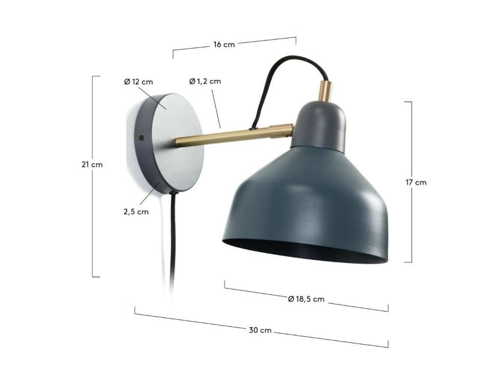 Kék fém fali lámpa Kave Home Olimpia 18,5 cm