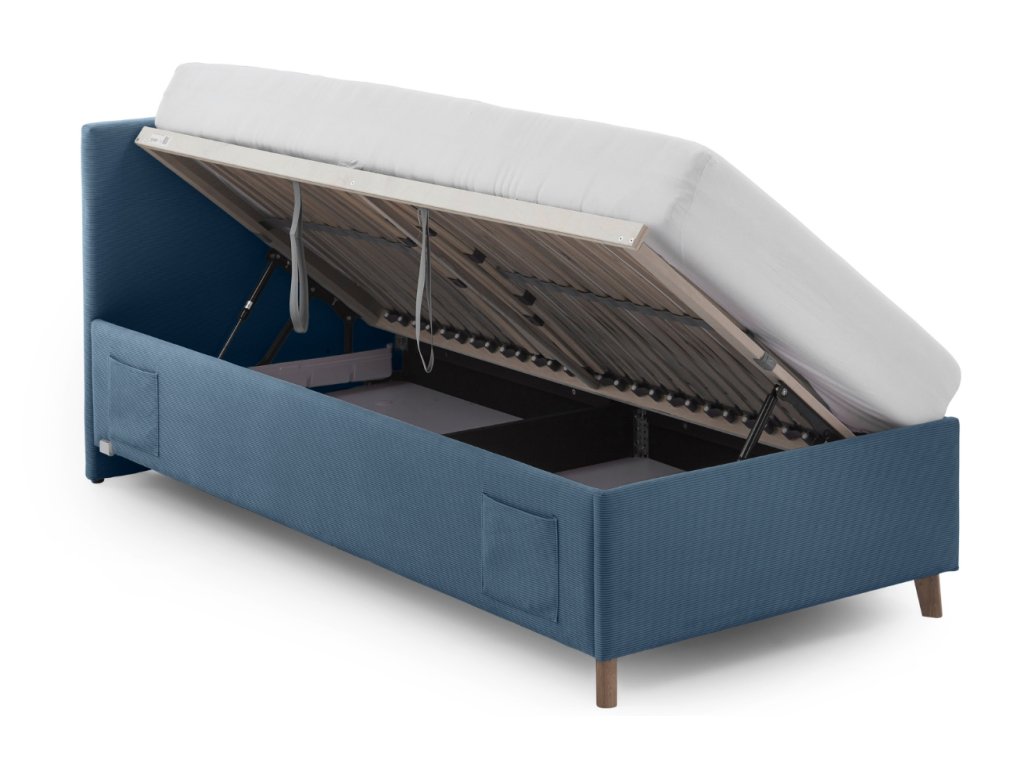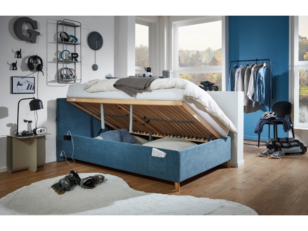 A stílusos Cool ágy bársony kárpitozással nagyszerű választás gyerek és diák szobákba. Az oldalán tágas zsebek találhatók, amelyekben elfér minden, amire lefekvés előtt szükséged lehet – könyv, folyóirat, játékkonzol, apró játékok vagy olvasószemüveg. Egy másik praktikus részlet a beépített USB és USB-C csatlakozó, amellyel töltheted a telefonod, MP3 lejátszódat vagy akár az órádat is. A Cool ágy ráadásul négy színben kapható, amelyek közül a fiúk és a lányok is választhatnak. Kapható kárpitozott oldalsó panellel is.