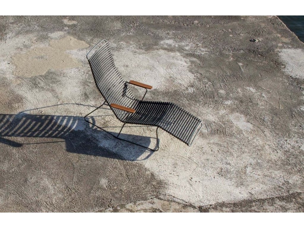 A HOUE Click kerti nyugágy modern, északi stílusú megjelenésével nyűgöz le. A műanyag lécekből készült kényelmes ülés, a bambusz karfák és a fém talp együttesen egy egyedi bútordarabot alkotnak. Szép tulajdonsága, hogy a nyugágyat két pozícióban lehet elhelyezni. Egyszerű súlyáthelyezéssel eldöntheti, hogy ülve marad vagy fekve pihen. A nyugágy alkalmas kültéri környezetbe - például a medencéhez is tökéletes. A Click sorozatban székek, fotelek és lábzsámolyok is megtalálhatók, így a kültéri ülőalkalmatosságok tökéletesen összehangolhatók.