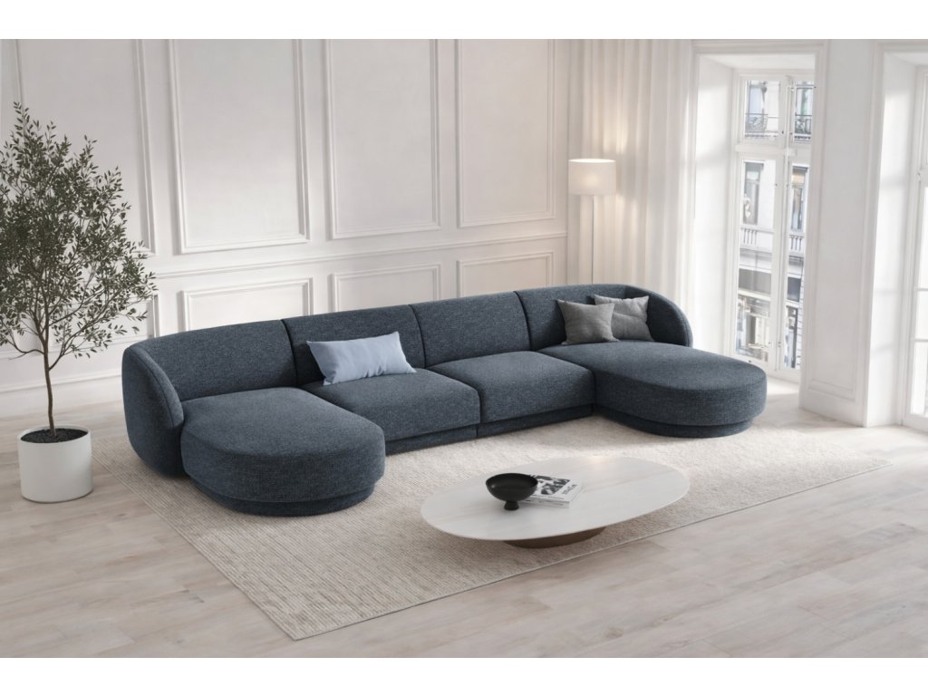 Kék zsenília "U" sarokkanapé MICADONI Miley 334 cm