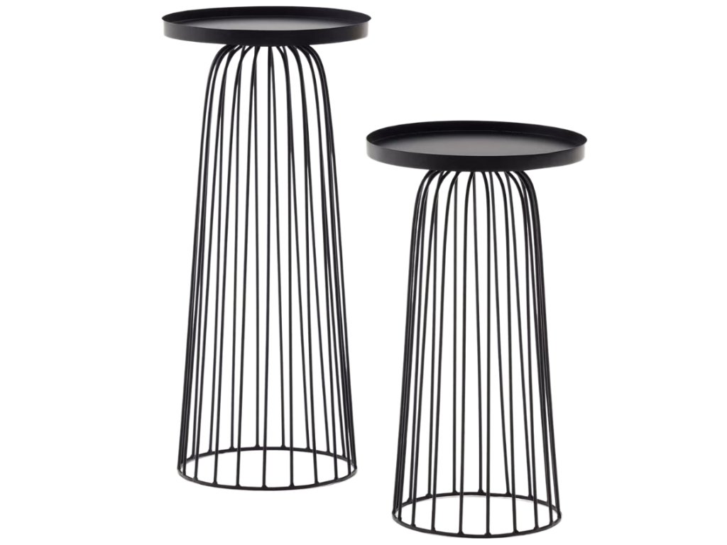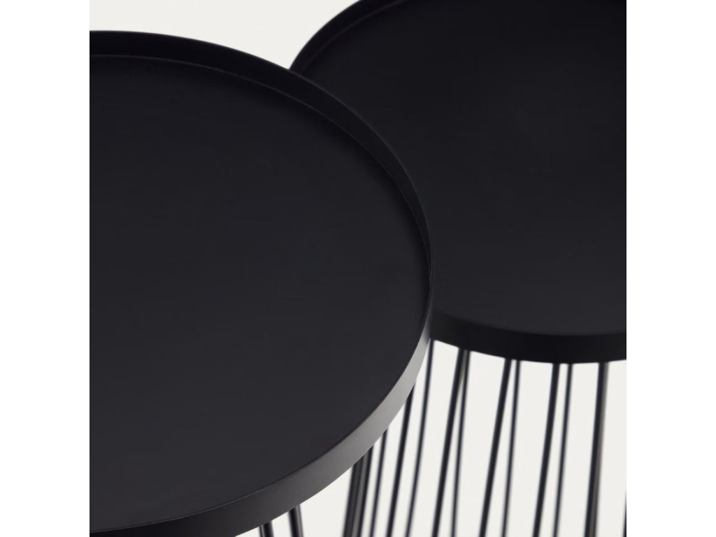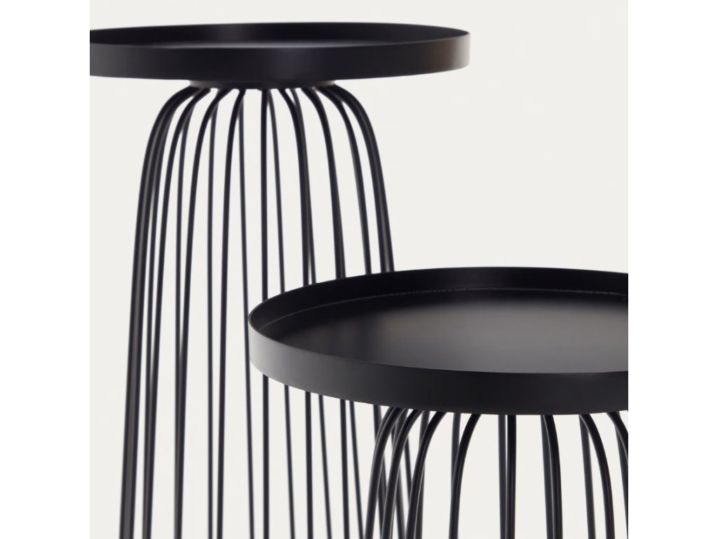Tárolóasztal-készlet Kave Home Dilva praktikus kiegészítője és stílusos dísze lesz a belső térnek! Az eredetileg formázott talapzat elegánsnak tűnik, és az asztalok általános minimalista kialakítása tökéletesen illeszkedik az ipari belső terekhez is. A készletben két darabot talál, amelyek magassága eltérő, de a lemez átmérője megegyezik. Az asztalok kiválóan alkalmasak például virágok vagy dekorációk elhelyezésére, de akár a nappaliban is elhelyezheti őket kedvenc fotelje mellett.