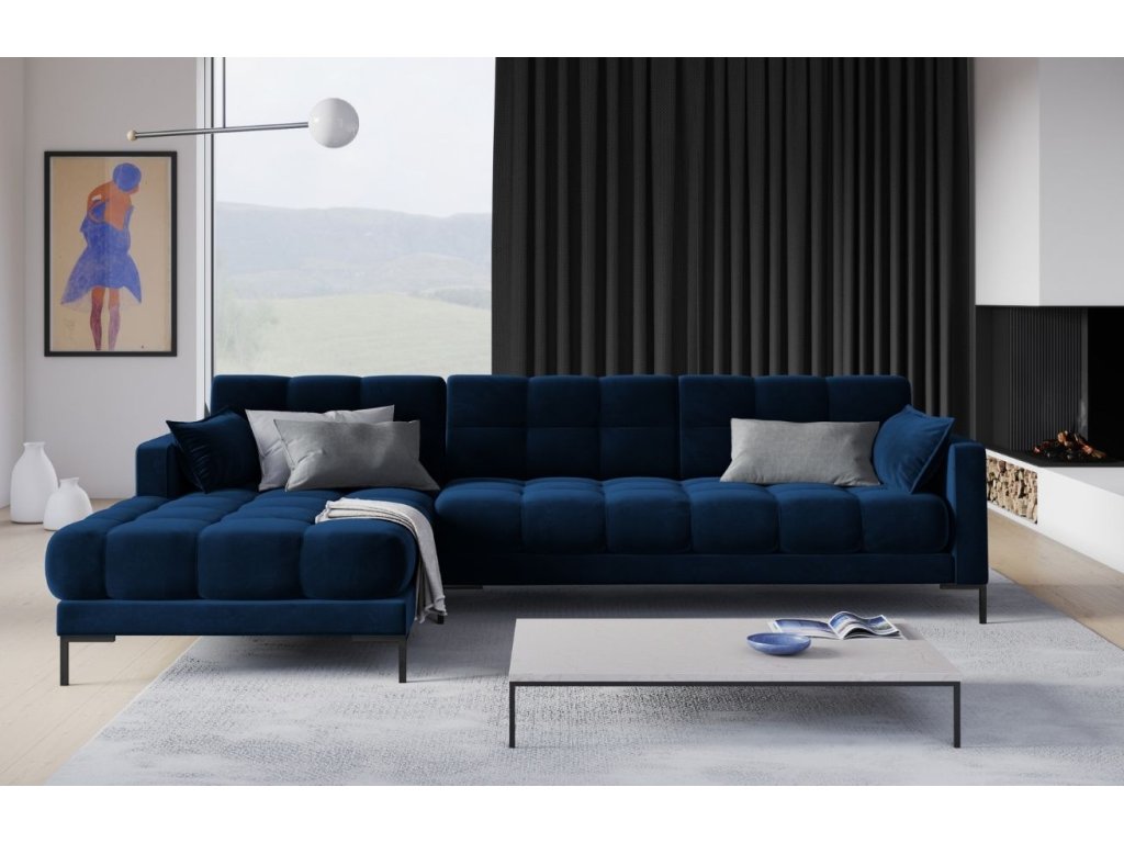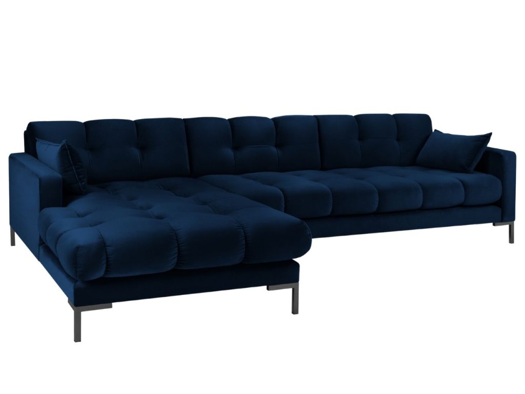 Királykék bársony sarokkanapé MICADONI MAMAIA 293 cm, bal