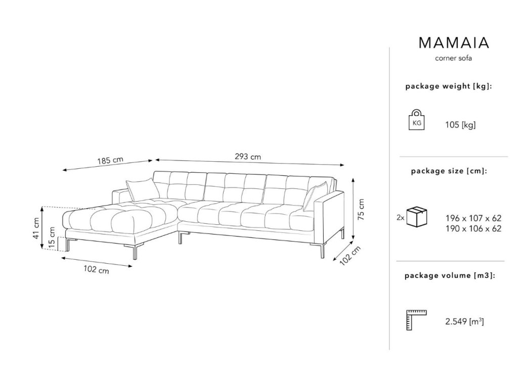 Az elegáns MICADONI MAMAIA sarokkanapé első pillantásra lenyűgözi a bolyhos megjelenésével. A nagyon kellemes bársony kárpitozás és a fém talp kontrasztot alkot, amely elegáns megjelenést és egy kis luxust kölcsönöz a belső térnek. Az érdekes varrás olyan finom dizájnt hoz létre, amely könnyedséget és stílust kölcsönöz otthonának. A hátpárnák a pihenésszintjét emelik . Vegye körül magát kényelemmel a Mamaia termékek társaságában.